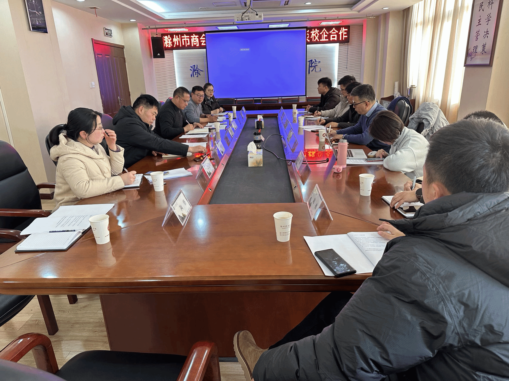 为培养直播类电商人才,共同推进产业学院的建设,大力推动地方电商产业发展,12月25日下午,金沙威尼斯官网在综合楼804会议室召开校企合作洽谈会。滁州市电子商务商会和以康佳集团为代表的地方电商头部企业拟按照“校企行”的合作模式与金沙威尼斯官网开展深度合作,校党委委员、商学院党总支书记李超,招生就业处副处长周多道,商学院院长程震、副院长许正环及有关专业负责人参加此次会议。