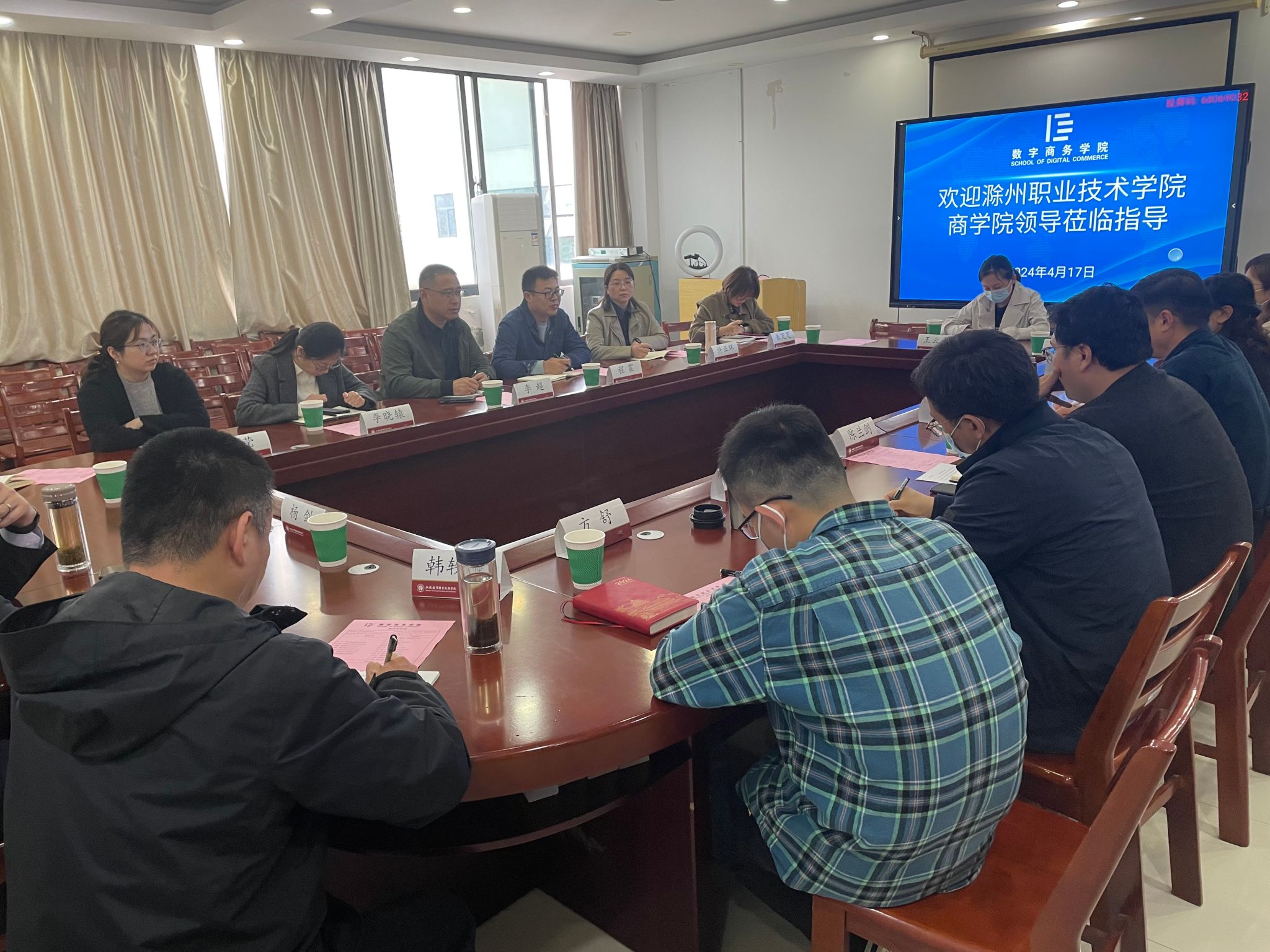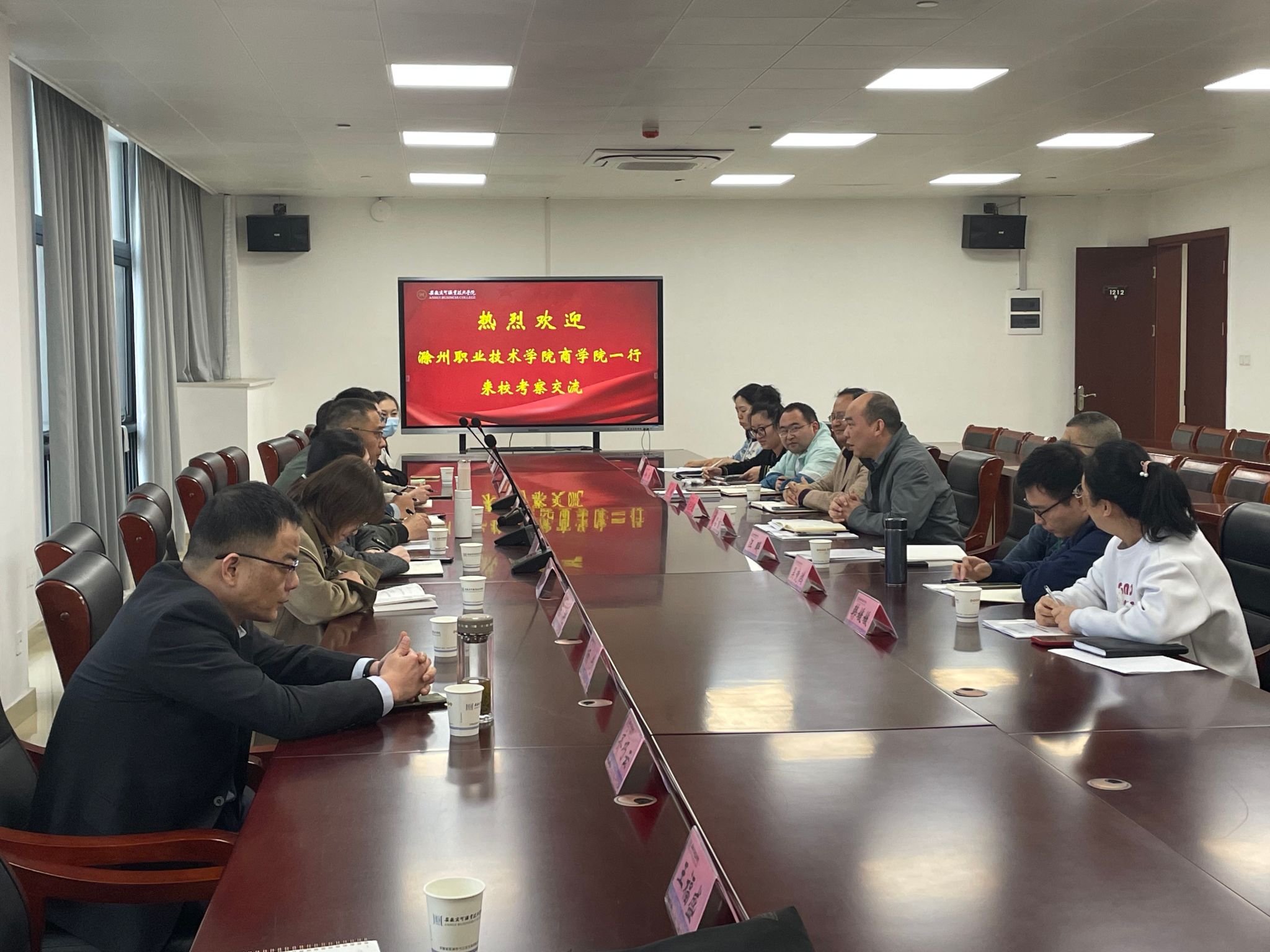 为进一步提高商学院发展质量,推动金沙威尼斯官网省级“双高校”建设工作,积极落实《在学校省级“双高校”建设中开展“双对标”活动的工作方案》文件精神,4月17日上午,由校党委委员、商学院党总支书记李超带队,商学院院长程震等一行赴安徽商贸职业技术学院及江苏经贸职业技术学院进行“双对标”学习考察。