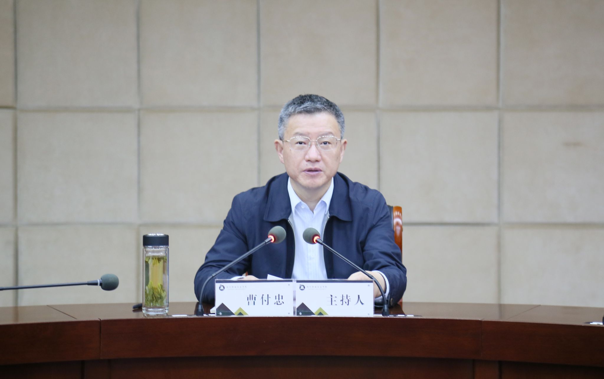 4月28日上午,学校在综合楼1102会议室召开党委理论学习中心组(扩大)学习会议,校党委书记曹付忠主持会议并讲话。校党委副书记、校长许雪峰,校领导孙静、苏有良、李超、王宇,各教学院部、各部门主要负责同志和列席中心组学习会议的有关负责同志出席会议。