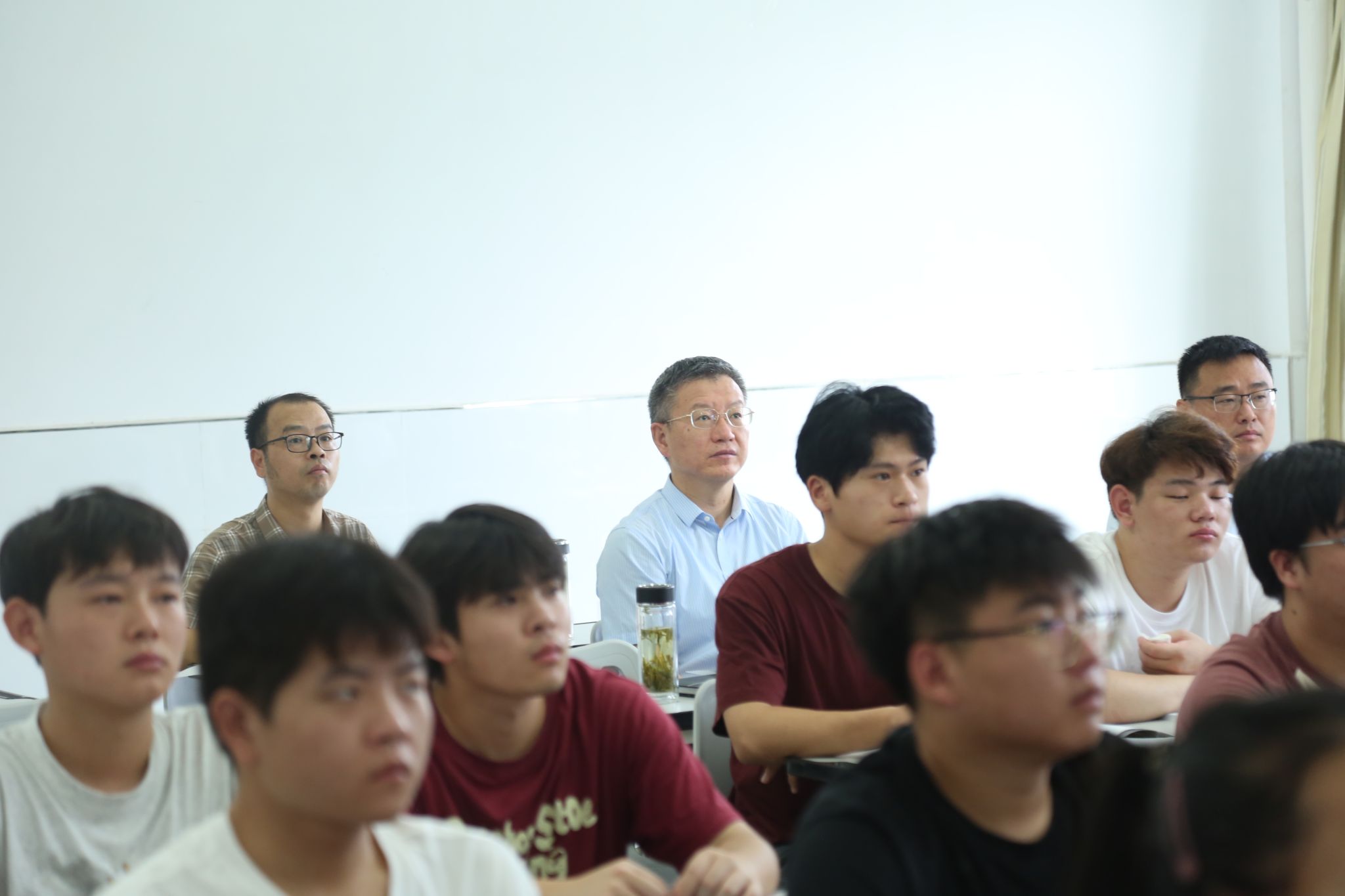 曹付忠来到致新楼5214教室,与22汽制班的同学们共同听取了程林老师主讲的《新能源汽车构造原理与检测维修》课程。曹付忠认真听取教师授课并仔细观察学生听课状态。课间曹付忠与程林老师就授课情况进行了交流并给予肯定。曹付忠指出,要实现“双高”建设的目标,必须坚持教学工作的中心地位,不断深化教育教学改革,加强师资队伍建设,提高教学资源的利用效率。同时,还要注重学生的全面发展,培养学生的创新精神和实践能力,为社会培养更多高素质技术技能型人才。曹付忠要求教务处和质量管理中心就如何上好第一节课要加强研究,组织开展新教师上好第一节课培训活动,不断提升教育教学水平。