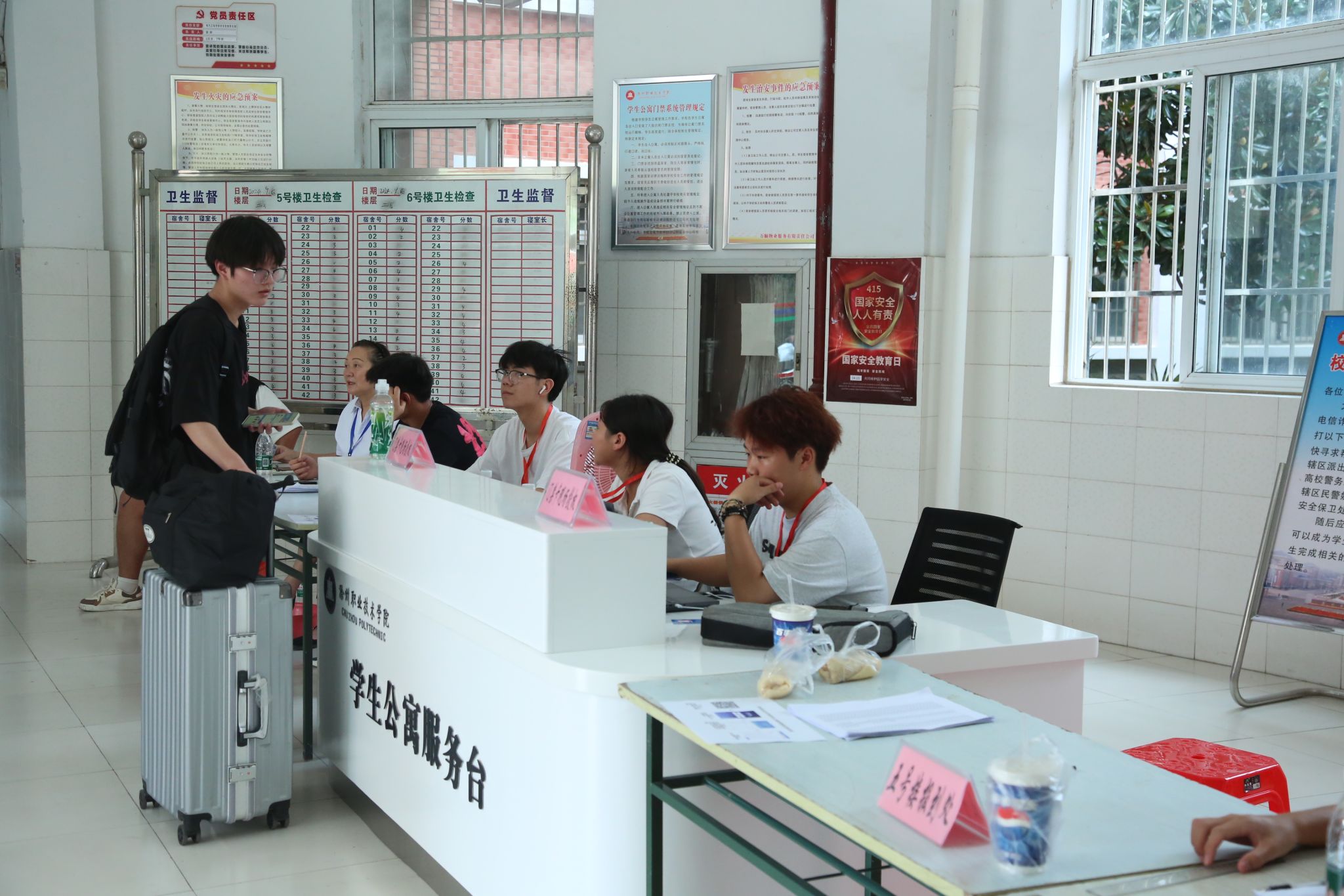 晨光熹微,志愿者们的身影早早出现在车站、校门、各报到点、宿舍等处,为新生们提供接站、带路、拉行李、答疑解惑等帮助。“学弟学妹,我带你去宿舍楼。”“学弟学妹,行李给我。”一句句亲切的关怀,一遍遍耐心的引导,学生志愿者们热情贴心的服务赢得了学生与家长的一致好评。学校的教职员工们也用心用情地投入到迎新工作中,辅导员老师们一早就在报到点等待,宿管阿姨们收拾好整洁干净的宿舍,食堂阿姨热情地为新生们打上足量可口的饭菜,保卫处及时疏导人流、维护秩序,为新生安全保驾护航......据悉,今年学校还利用智慧校园服务平台开展迎新服务,通过数字赋能不断提升信息化服务管理水平。新生可在手机上提前完成“人像核验”、报到、缴费等操作,并查询到辅导员联系方式和班级群号等相关情况,真正做到“以生为本”,用暖心周到的服务帮助新生早日融入校园生活。