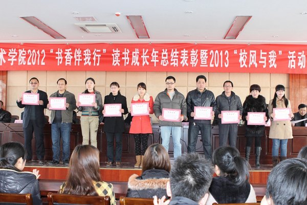 会议总结了“书香伴我行”读书成长年工作,表彰了在工作中涌现出来的先进集体和优秀个人;希望全院师生进一步巩固和提升学院优良学风、校风建设成果,积极开展2013年“校风与我”活动,推进示范院校建设,促进学校又好又快发展。