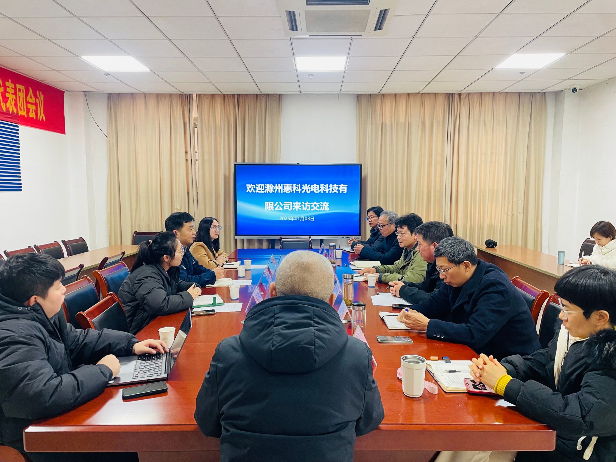 1月3日下午,滁州惠科光电科技有限公司党委书记、工会主席黄海涛一行来访交流合作事项。校党委委员、副校长苏有良出席会议,招生就业处副处长王义利主持会议。招生就业处、实验实训中心、电气工程学院、信息工程学院、机械与汽车工程学院、管理学院、继续教育学院等部门负责同志和有关人员参加了此次交流。