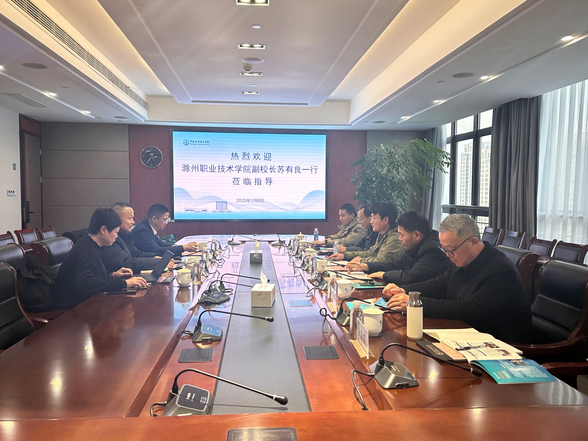 为进一步深化产教融合、校企合作,更好地推动“双高校”建设项目落地见效,1月8日,校党委委员、副校长苏有良带队赴宁波职业技术学院就机电、人工智能等专业群产教融合公共实训基地建设等进行调研,校企合作办、实验实训中心、信息工程学院负责同志和有关人员随同调研。宁波职业技术学院党委委员、副校长杨林生,教务处处长张启明和有关二级学院负责同志热情接待了苏有良一行。