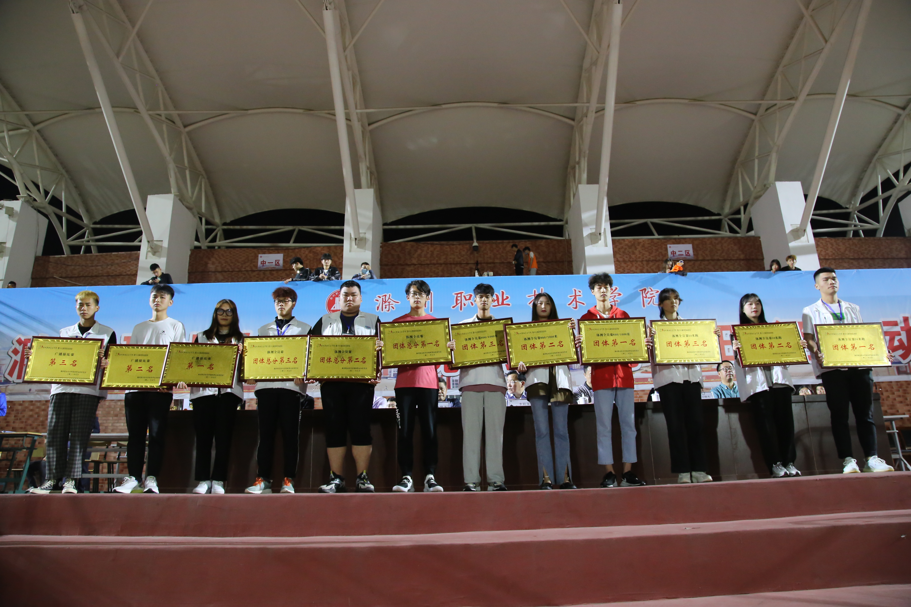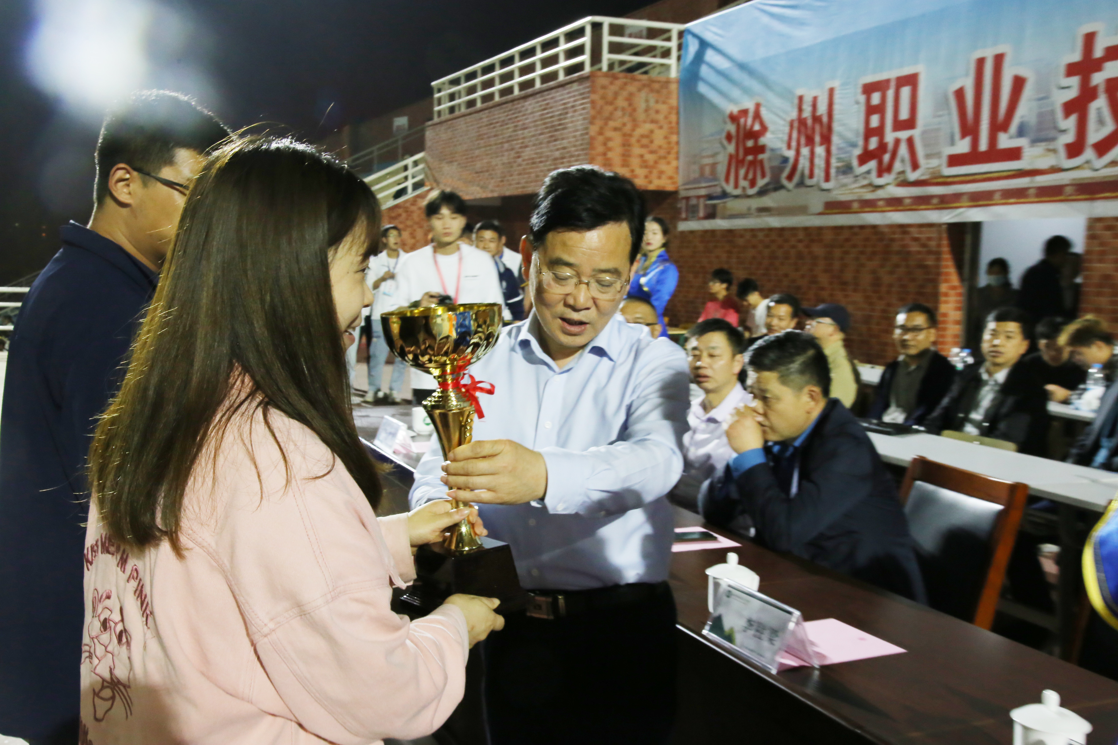 闭幕式上,本次运动会总裁判长杨秀芹宣布了竞赛成绩。校党委书记李柱梁、党委副书记杨家庆分别为荣获团体奖项的集体颁发了奖杯。
