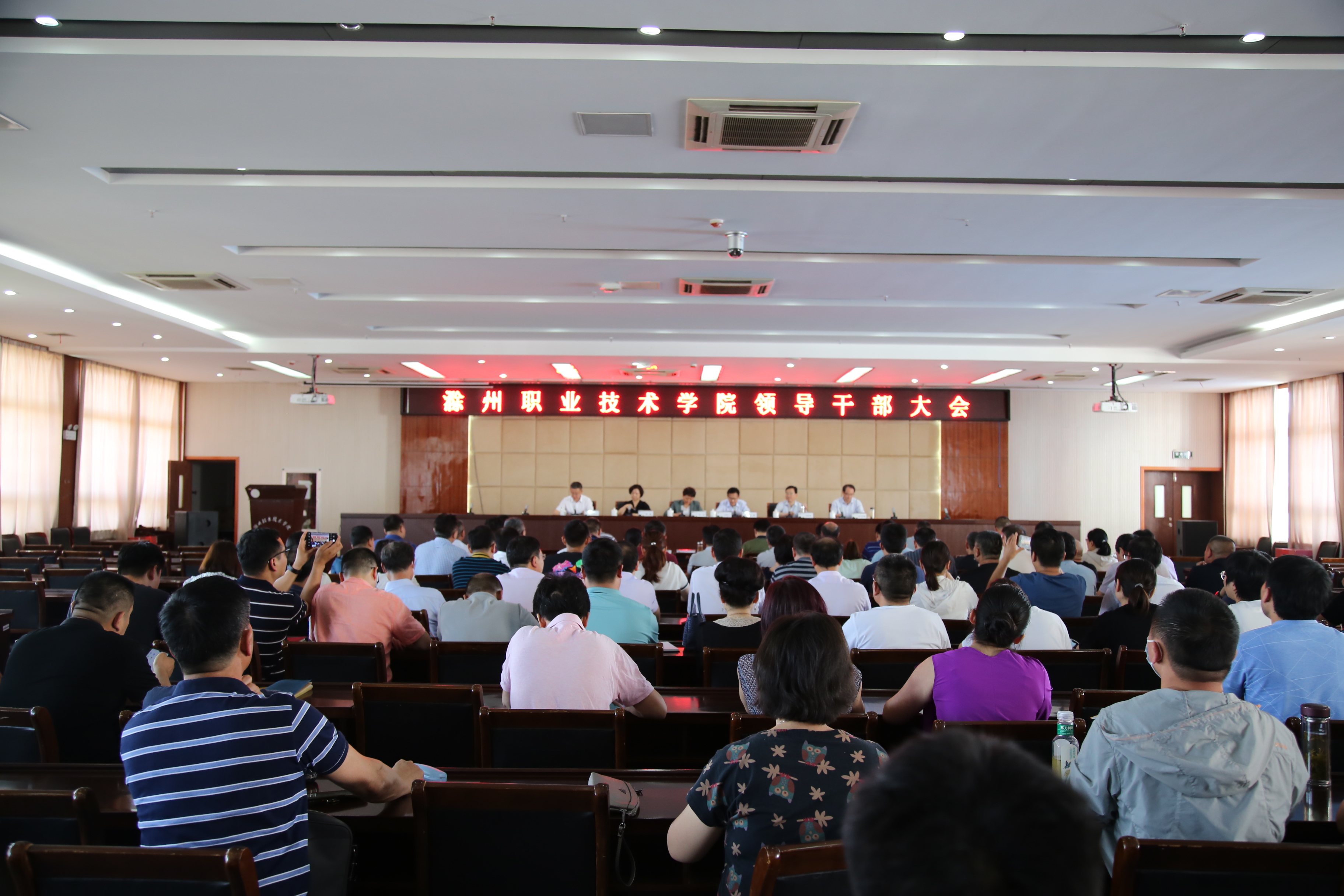 6月7日下午,金沙威尼斯欢乐娱人城召开全校领导干部大会,宣布省、市委关于学校党委主要负责同志职务调整的决定。滁州市委副书记、常务副市长金力出席会议并讲话,市政府副市长陆峰主持会议,市委组织部常务副部长、市公务员局局长、市委非公工委书记焦艳宣布省委、市委决定。