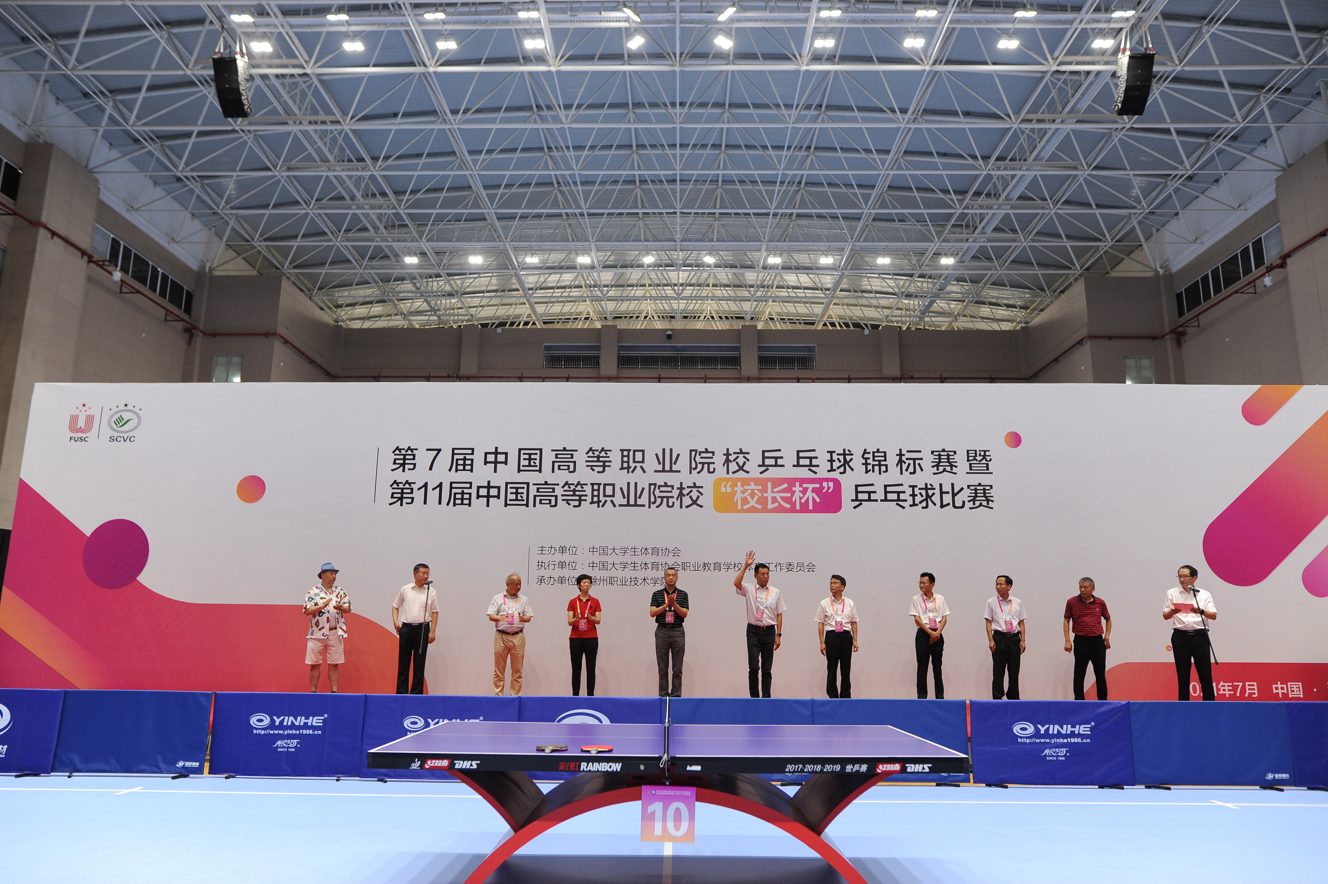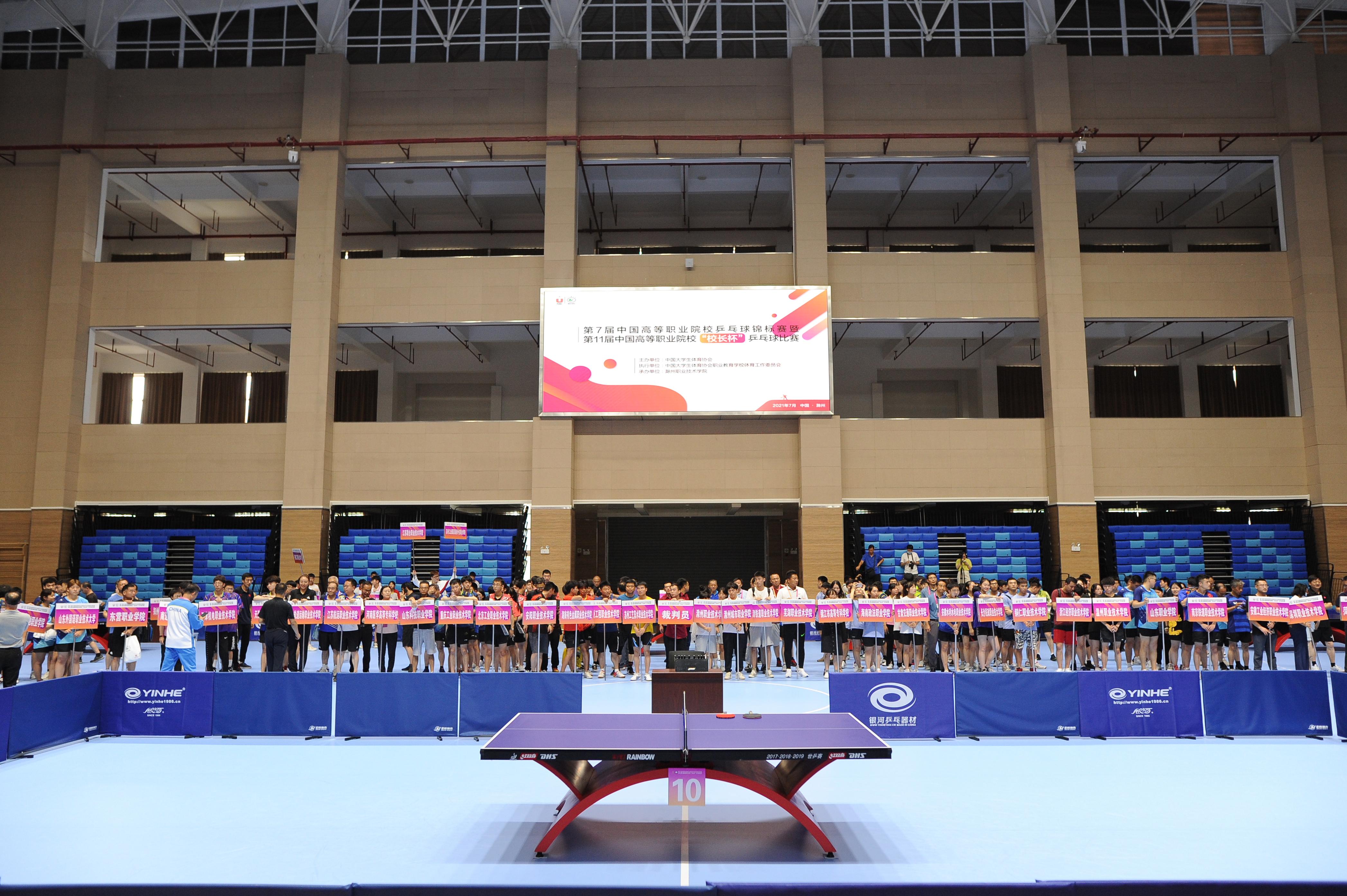 7月13日,第11届中国高等职业院校“校长杯”乒乓球比赛开幕式暨第7届中国高等职业院校乒乓球锦标赛颁奖仪式在金沙威尼斯官网体育馆隆重举行。中国大学生体育协会综合部主任张汉,中国大学生体育协会职业教育学校体育工作委员会秘书长贾书申,前乒乓球世界冠军、北京体育大学副教授牛剑锋,安徽省教育厅二级巡视员许绪荣,滁州市人大常委会主任、党组书记王图强,滁州市政府副市长陆峰,金沙威尼斯欢乐娱人城党委书记曹付忠,党委副书记、校长许雪峰,滁州市委教育体育工委书记、市教体局局长王玉和,安徽省乒乓球协会副主席江银,李国棣出席仪式。开幕式由许雪峰主持。