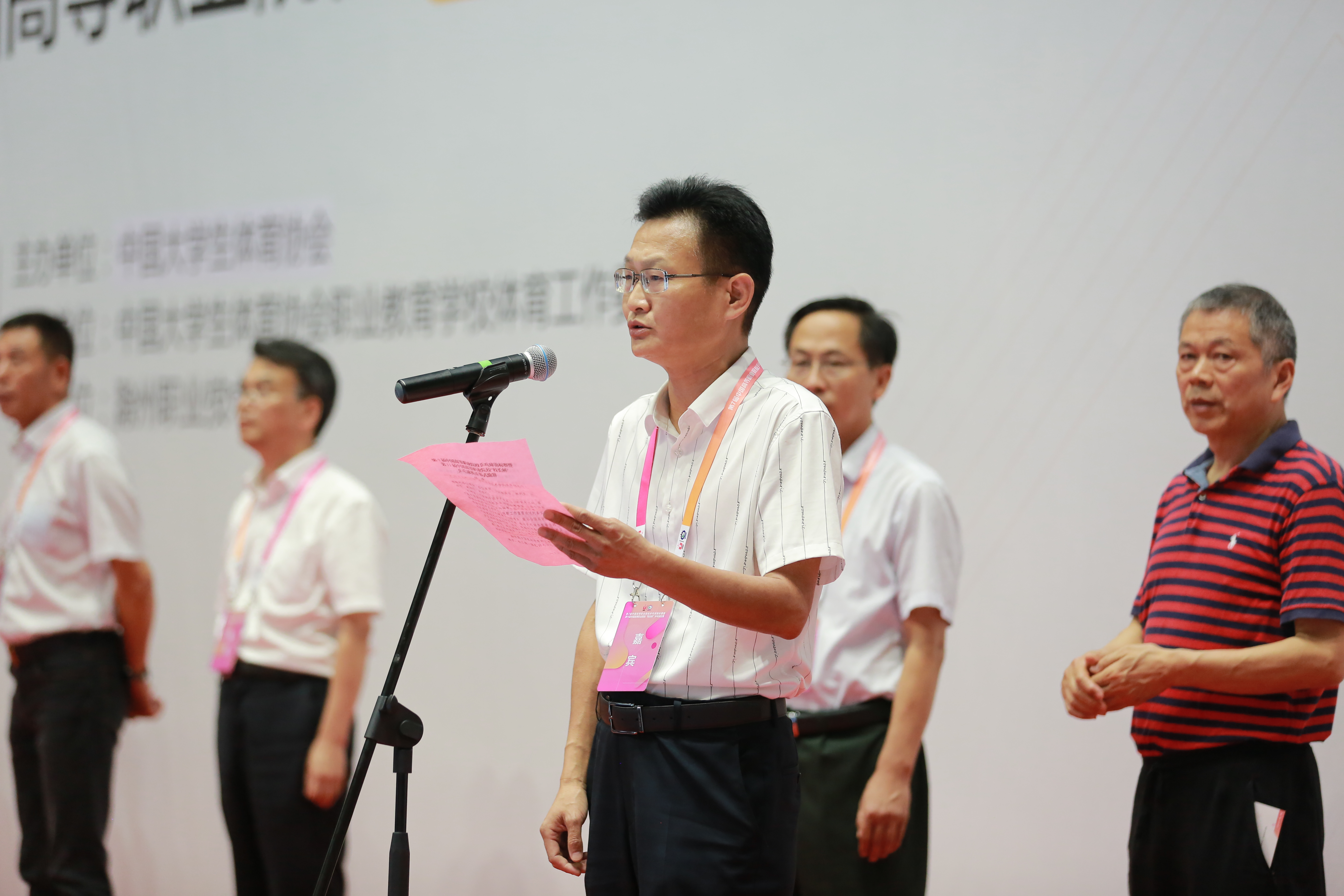 芜湖职业技术学院副校长孙晓雷代表运动员宣誓,裁判员代表宣誓。