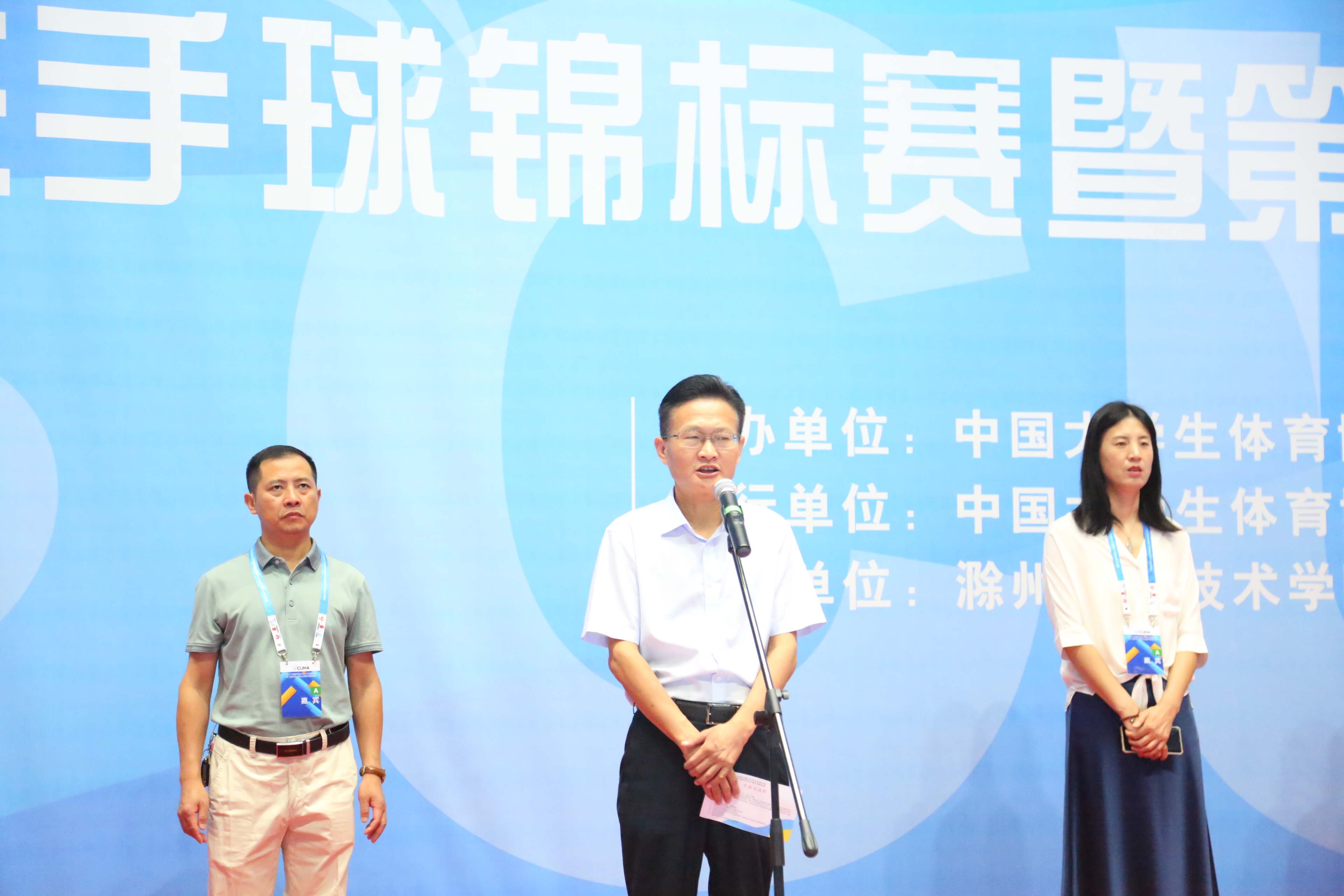 7月19日, 锦标赛开幕式在学校体育馆隆重开幕。中国大学生体育协会手球分会副主席、华南农业大学副校长咸春龙,中国手球协会副主席王益民,中国大学生体育协会手球分会副主席、同济大学体育部主任卢天凤,中国大学生体育协会手球分会秘书长姜志明,滁州市政府副市长陆峰,金沙威尼斯欢乐娱人城党委书记曹付忠,党委副书记、校长许雪峰,滁州市教体工委副书记杨洲出席开幕式。开幕式由许雪峰主持。