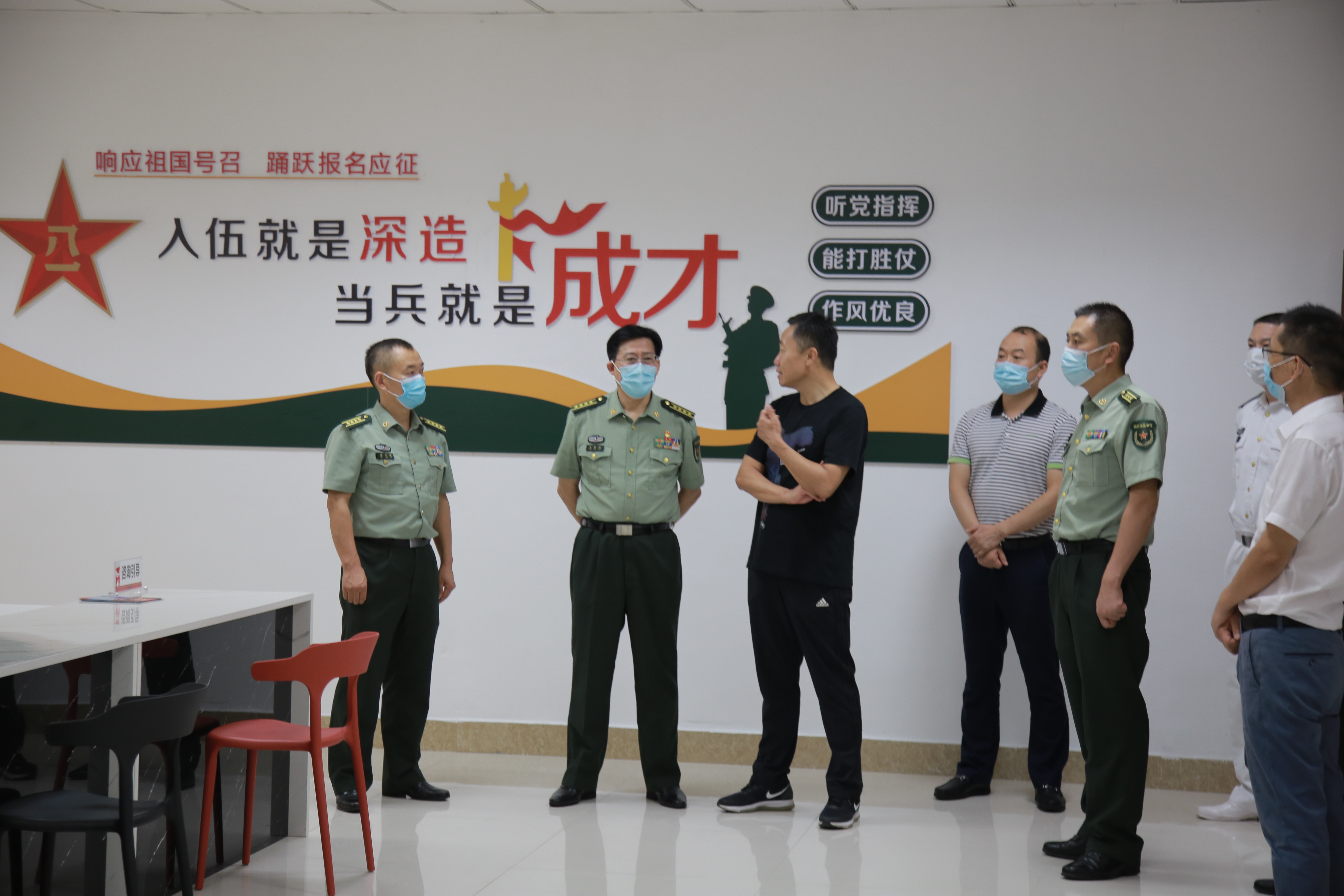 8月13日下午,省军区国防动员局局长、省征兵办公室主任王贤纯,省教育厅高校学生处四级调研员强少华一行莅临金沙威尼斯官网检查指导“征兵工作站、兵役服务站”平台建设工作。校党委副书记杨家庆接待检查指导组一行。