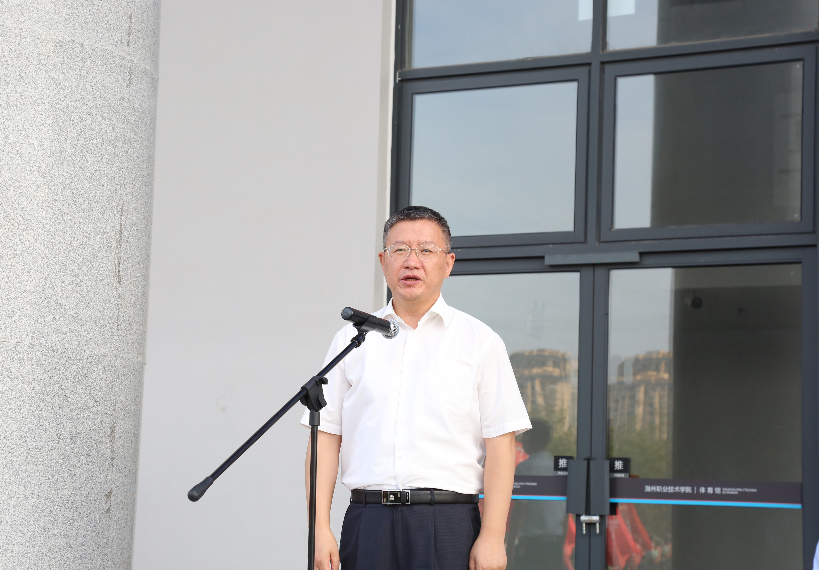 教师代表建筑工程学院晋文婷,新生代表智能制造学院王圆圆先后发言。薛锋就军训事宜作指示。