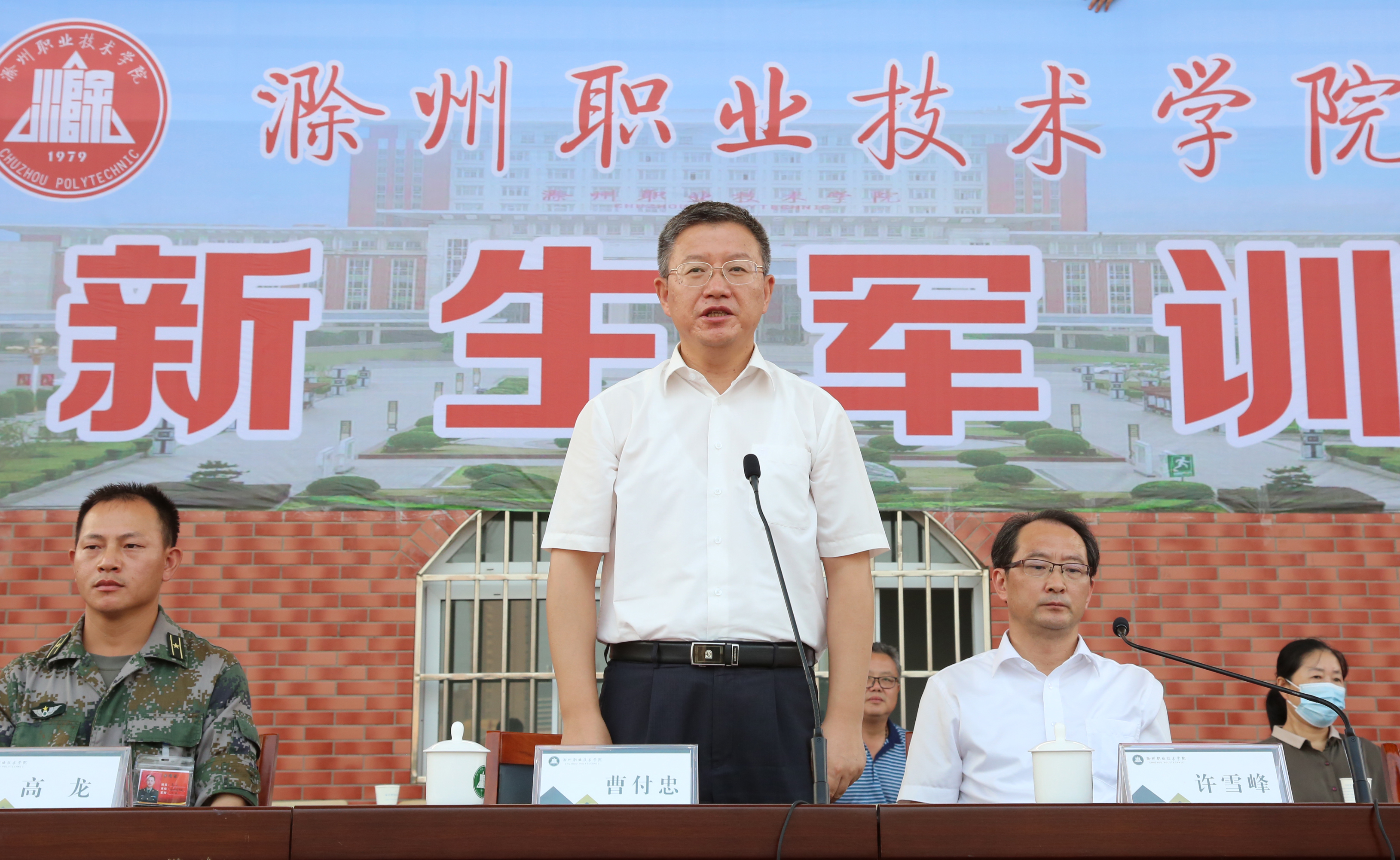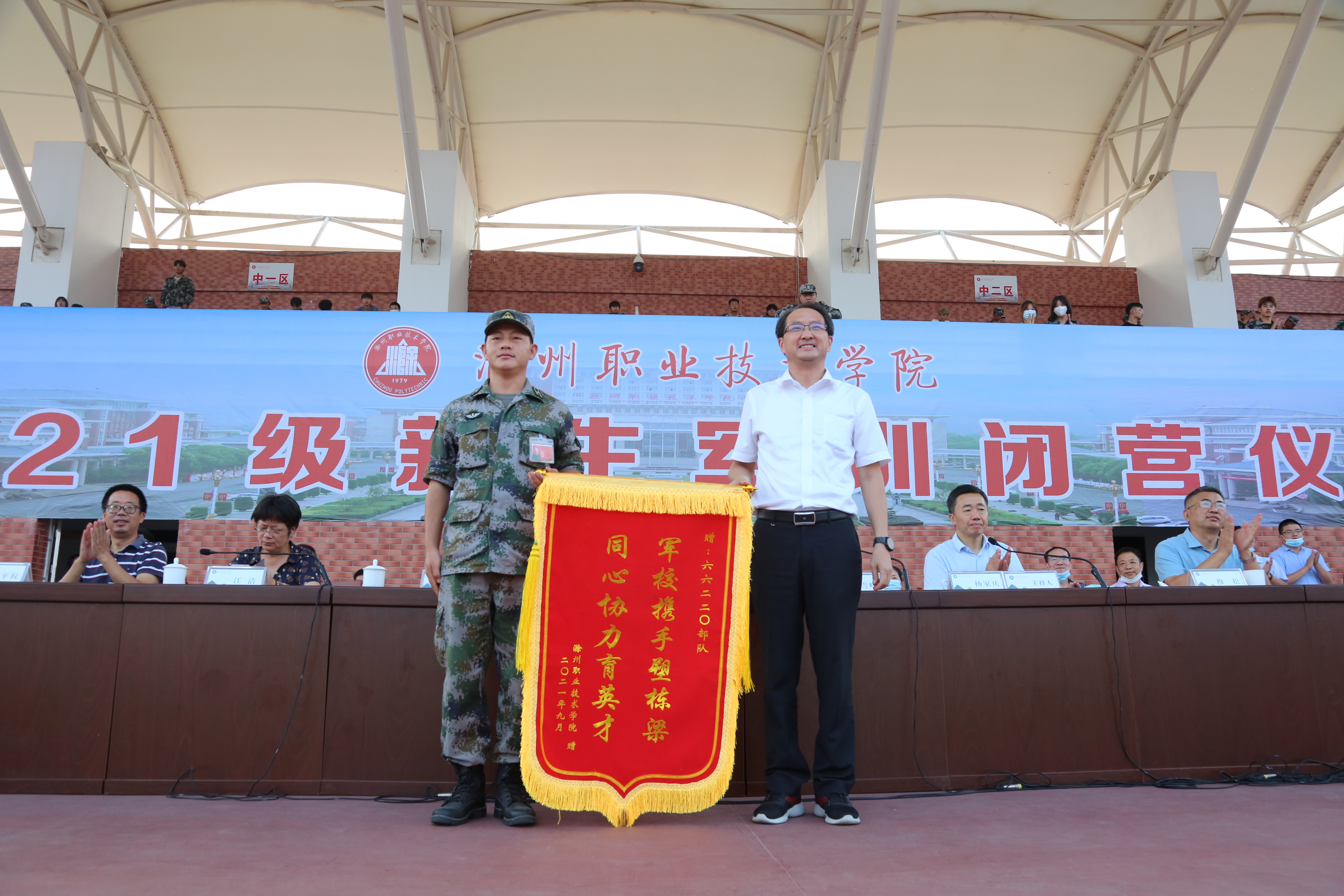 曹付忠宣布金沙威尼斯欢乐娱人城2021级新生军训闭营。