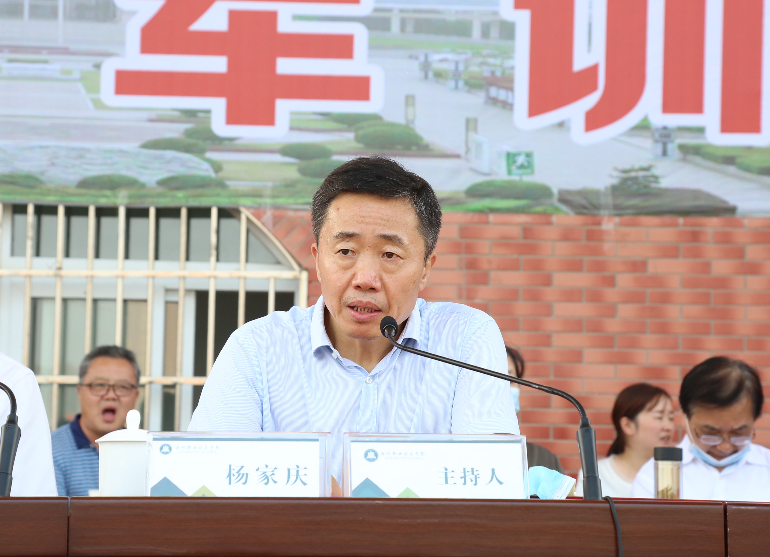 仪式现场,杨家庆代表学校向全体军训教官和参训新生表示诚挚的问候,且充分肯定了军训成果。指出,本次军训的历练不仅增强了同学们的组织纪律性和团队合作精神,磨炼了大家的品德意志,将使同学们受益终生。他希望同学们把军训中的好思想、好作风发扬光大,融入到大学的学习和生活之中,自觉利用学校齐全的设施设备和丰富的教学资源,获取知识技能,提升自我,努力成长为一名思想成熟、品格优良、知识丰富、作风过硬、文明向上的高素质高技能人才。希望同学们勇于担当、砥砺前行,不负韶华,以人生的精彩回馈社会,回报父母!
