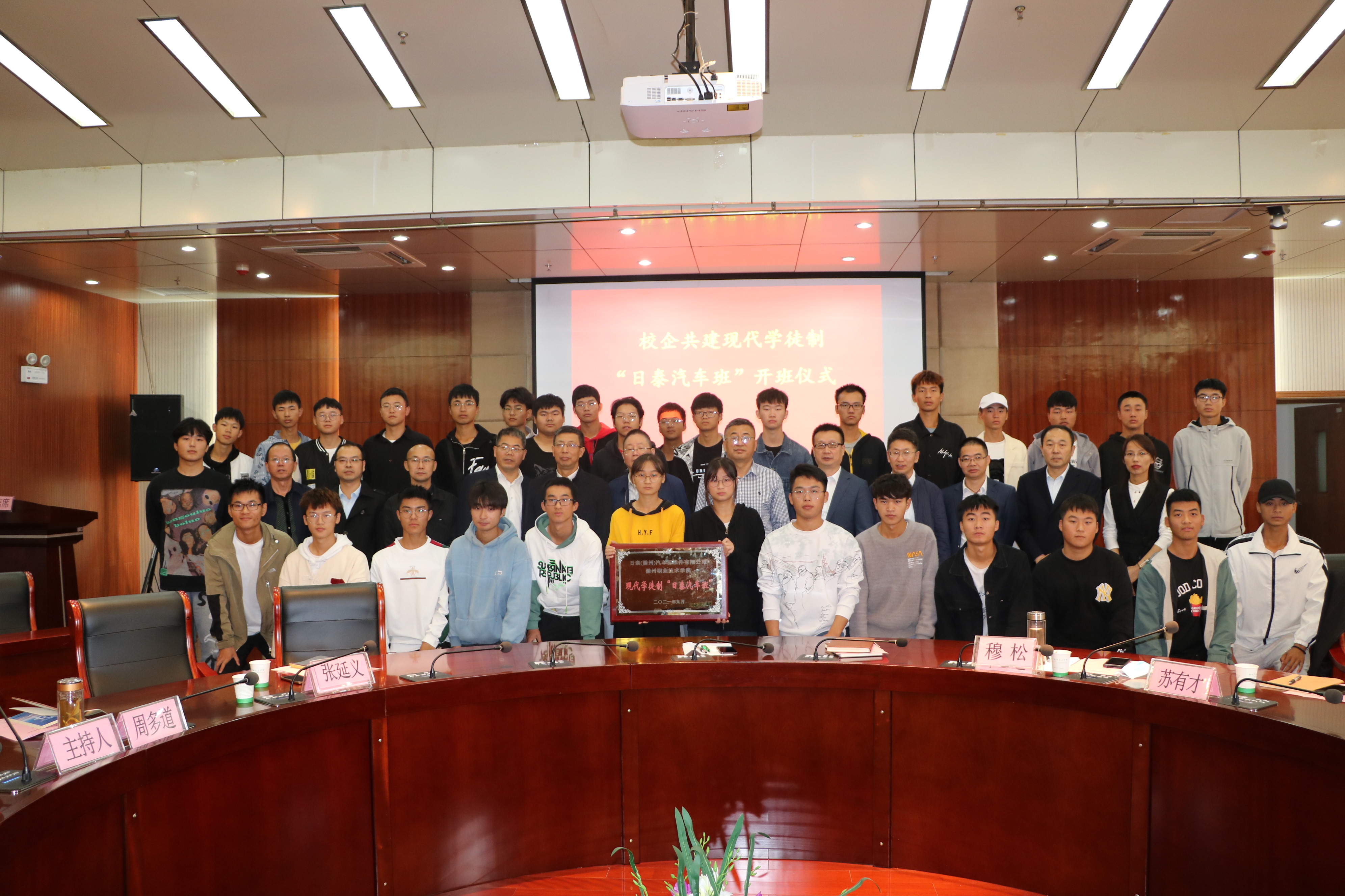 10月15日上午,金沙威尼斯官网在综合楼11楼会议室举办校企共建现代学徒制“日泰汽车班”开班仪式。校党委委员、校长助理、招生就业处处长穆松,日泰(上海)汽车标准件有限公司总经理章志暹出席会议,教务处处长张延义,机械与汽车工程学院院长张信群以及相关部门负责人和“日泰汽车班”所有学员参加了会议。会议由招生就业处副处长周多道主持。