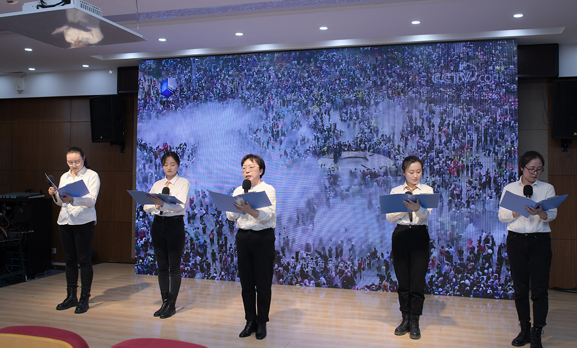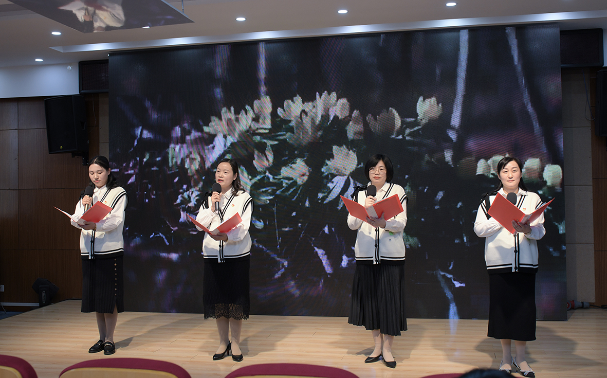 随着背景音乐的响起,机关三分工会的老师们表演《献给母亲的歌》拉开了此次活动的帷幕,朗诵者们用饱满而富有韵律的声音歌颂伟大的母亲。