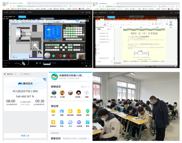电气工程学院此次共有12门课程进行线上直播教学,主要授课渠道包括超星(学习通)、QQ课堂、QQ群直播、QQ会议等直播平台,授课课程包括理论课、实训课、理实一体化课程。