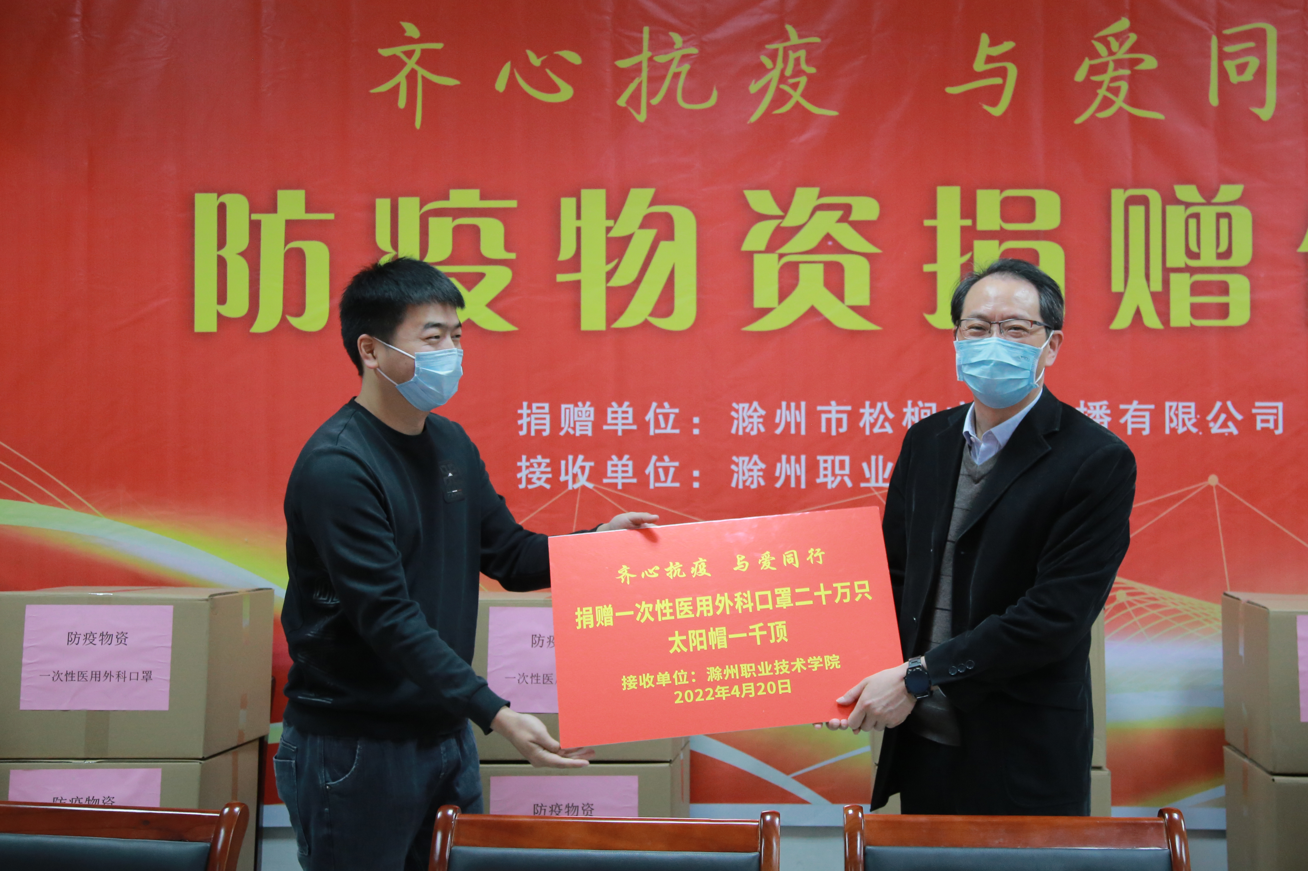 范世豪表示,松榈公司一路走来,得到了母校各级领导和老师的大力支持。了解到母校当前的疫情防控工作任务非常繁重,作为校友与起步并成长于学校创业孵化基地的企业,始终牵挂着母校师生的健康和安全,能为母校的疫情防控工作做出一点贡献,奉上松榈公司的点滴爱心,是作为“滁职”校友应有的感恩之举,是我们松榈公司应尽的社会责任,更是学生和母校之间命运与共的体现!