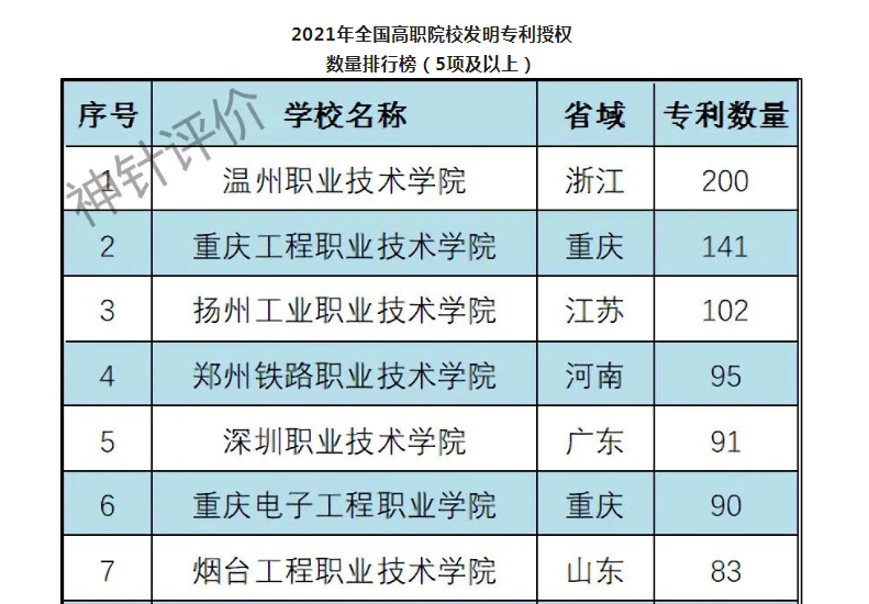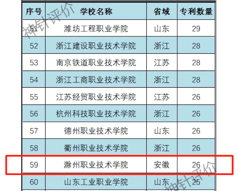 发明专利,是衡量一个地区或机构科技创新能力的重要指标。近日,据致力于教育研究的第三方研究团队“神针评价(SZPJ)”的数据监测显示,2021年全国高职院校共获得授权发明专利数量为5376项,校均获得数为3.54项,和2018年相比翻了一番多。其中属于战略性产业类的发明专利数量为3295项,占比61.3%。金沙威尼斯官网2021年授权发明专利数26项,位列全国59名,全省第三。(详见下图)