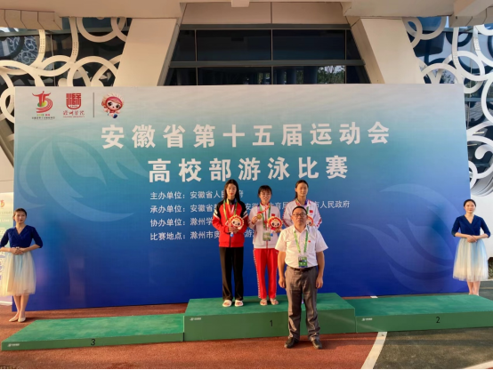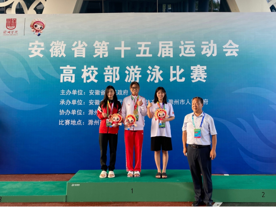 在首个比赛日,金沙威尼斯官网运动健儿劈波斩浪,“泳”往直前,充分发扬滁州职院运动精神,获得多项个人比赛的优异成绩。来自交通运输学院的顾景宇获50米自由泳金牌,食品与环境工程学院的袁贤雨获50米蝶泳铜牌、朱宇韩获50米自由泳铜牌、传媒与设计学院叶雨蝶获100米蛙泳铜牌。