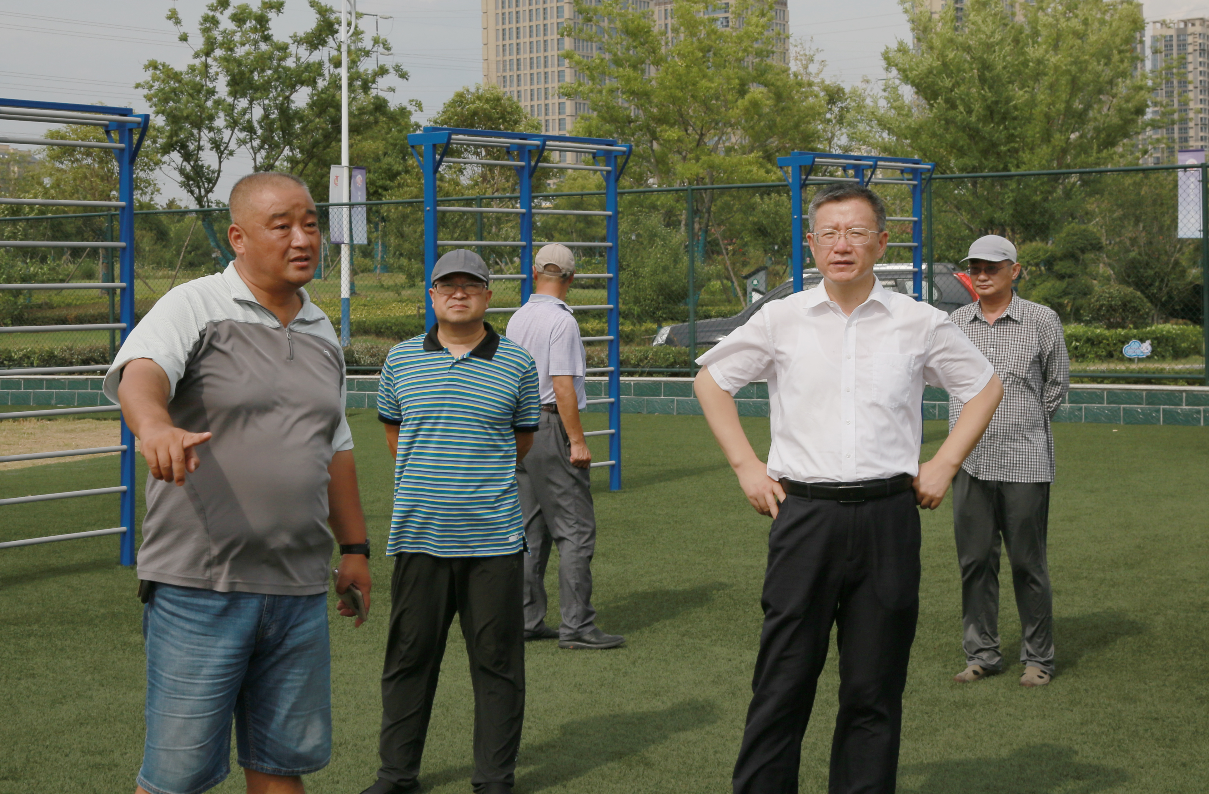 曹付忠一行沿往返路线先后来到体育馆、体育场、学校东大门、北操场等重点场所,实地查看了周边环境和氛围营造工作。