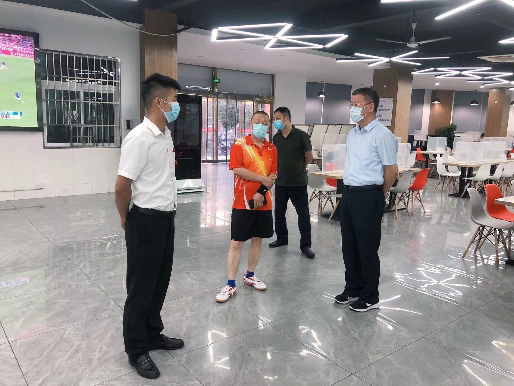 9月6日,曹付忠一行深入后勤综合服务中心、学校超市、食堂一线检查指导疫情防控工作。曹付忠详细了解了学校疫情防控物资储备情况与食堂餐品供应情况,强调要备足消毒液、体温测试仪、口罩等防控物资,确保师生的日常生活物资供应丰富及时,严格管控食品质量与安全,严格做好所有后勤在校人员的健康监测,筑牢校园疫情防控安全防线。