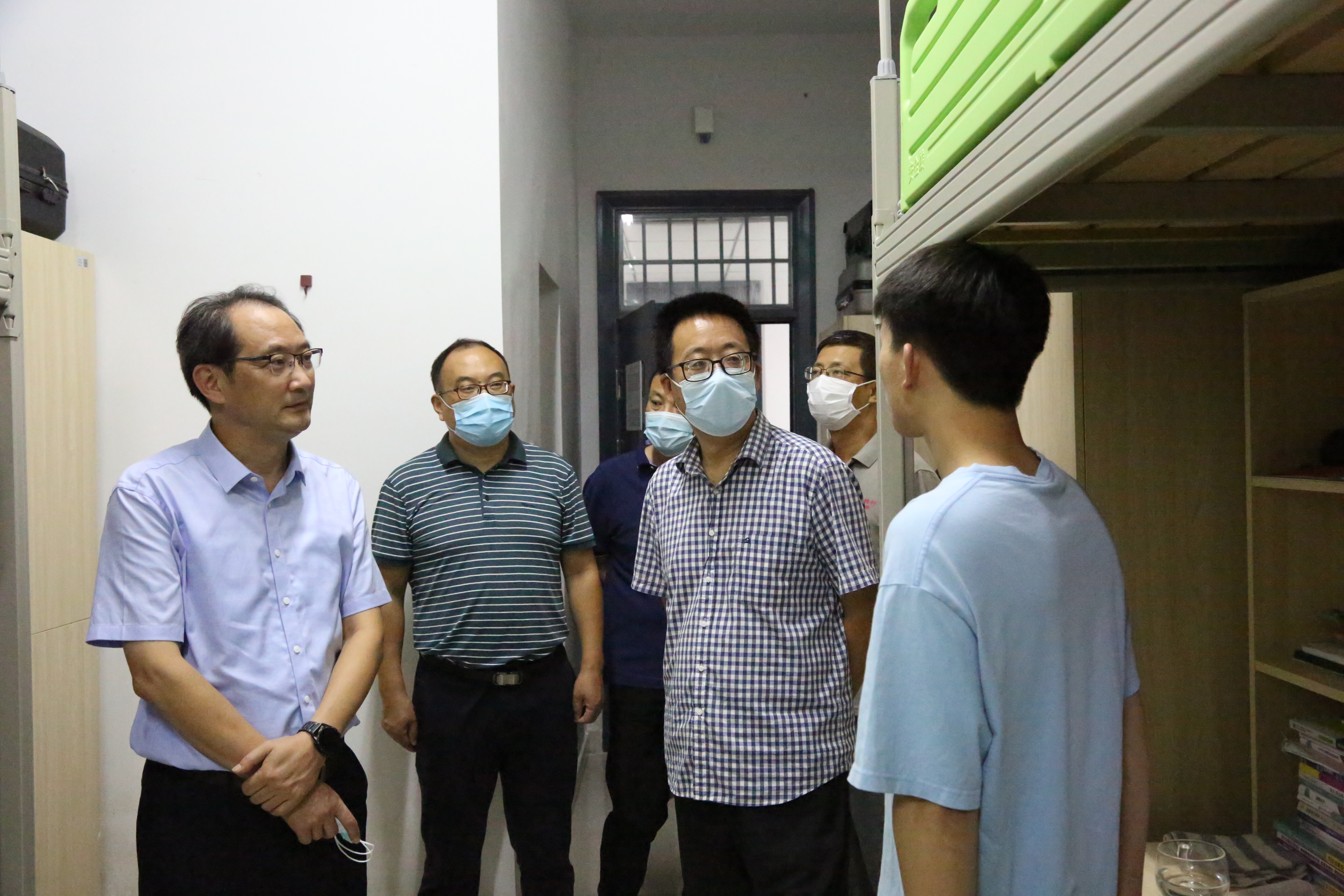 许雪峰一行来到学生宿舍楼看望慰问在校学生,为同学们送上节日祝福与关心。“有没有拿到学校发的月饼?”“同学们还有没有什么困难和要求?”许雪峰与同学们进行了亲切交谈,并号召同学们做好防护、认真落实疫情防控要求,勉励同学们珍惜时光,认真学习,健康成长。学校的关怀让同学们倍感温暖,大家纷纷表示会严格遵守疫情防控各项规定,以积极向上的心态投入到学习与生活之中,不辜负学校的殷殷期望!