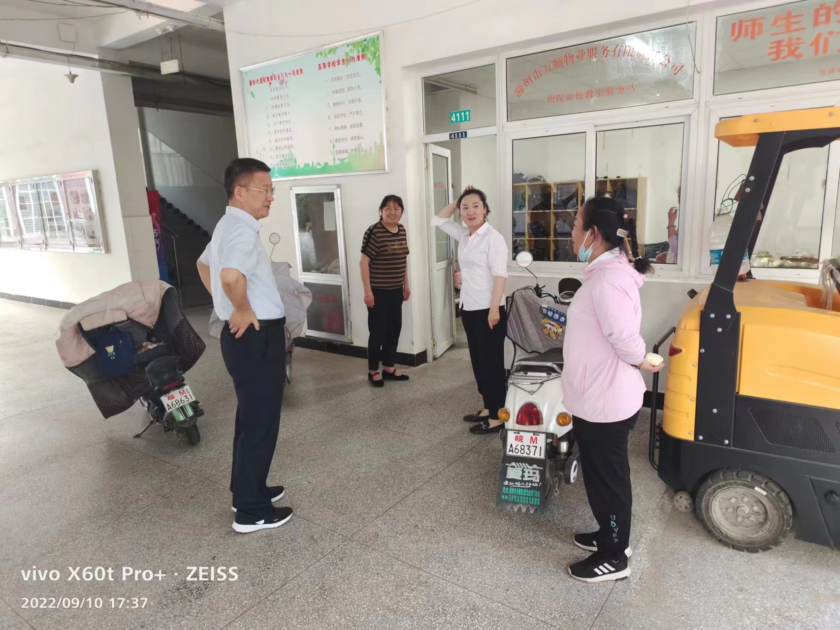 曹付忠一行对在岗教职工驻校工作、坚守岗位、勇担重任的精神致以崇高的敬意。曹付忠仔细询问教职工值班期间的生活保障情况,同时叮嘱大家做好个人防护,注意劳逸结合,保持良好的工作状态和精神状态,保障好自身健康与安全。校领导亲切的话语和真诚的关怀让坚守一线的教职工倍感温暖,并表示将一如既往地履职尽责、担当奉献,为守好校园疫情防控底线,保障教育教学工作平稳运行贡献自己的力量。