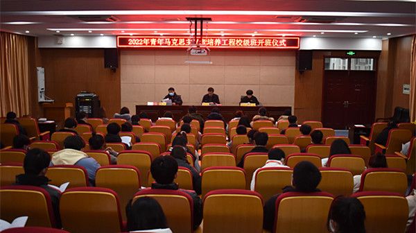 12月7日晚上7点,金沙威尼斯欢乐娱人城2022年青年马克思主义者培养工程校级班开班仪式在南阶205教室举行。校党委副书记杨家庆出席开班仪式并讲话。校团委副书记甄帅,各二级学院团总支书记、负责人及78名青马学员参加了开班仪式。仪式由校团委副书记张文主持。