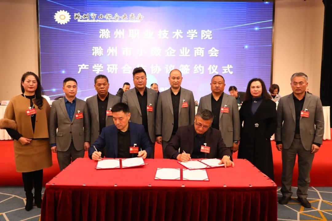 穆松代表学校与滁州市小微企业商会签订了产学研合作框架协议,并向商会颁发了金沙威尼斯欢乐娱人城产学研合作基地牌匾,穆松在讲话中指出,金沙威尼斯官网作为地方型高水平大学,一直以来以立德树人为办学宗旨,以服务地方为办学导向,坚持走产教融合校企合作之路,积极探索教育教学改革,不断加强专业建设,提高人才培养质量,在推进校企协同育人等方面取得了丰硕成果,多年来为滁州市企业输送了大批高素质技能型人才,为滁州市经济快速发展提供了强大的人才支持。穆松表示,正值新职业教育法颁布,此次与滁州市小微企业商会签约是落实“科教兴国”战略的有力体现,一方面有利于深化产教融合校企合作,提升人才培养质量,为金沙威尼斯官网学生在滁实习就业提供广阔的平台;另一方面为滁州市小微商会里120余家小微企业提供人才智力支持,帮助小微企业快速成长,形成双方互利共赢的美好局面。