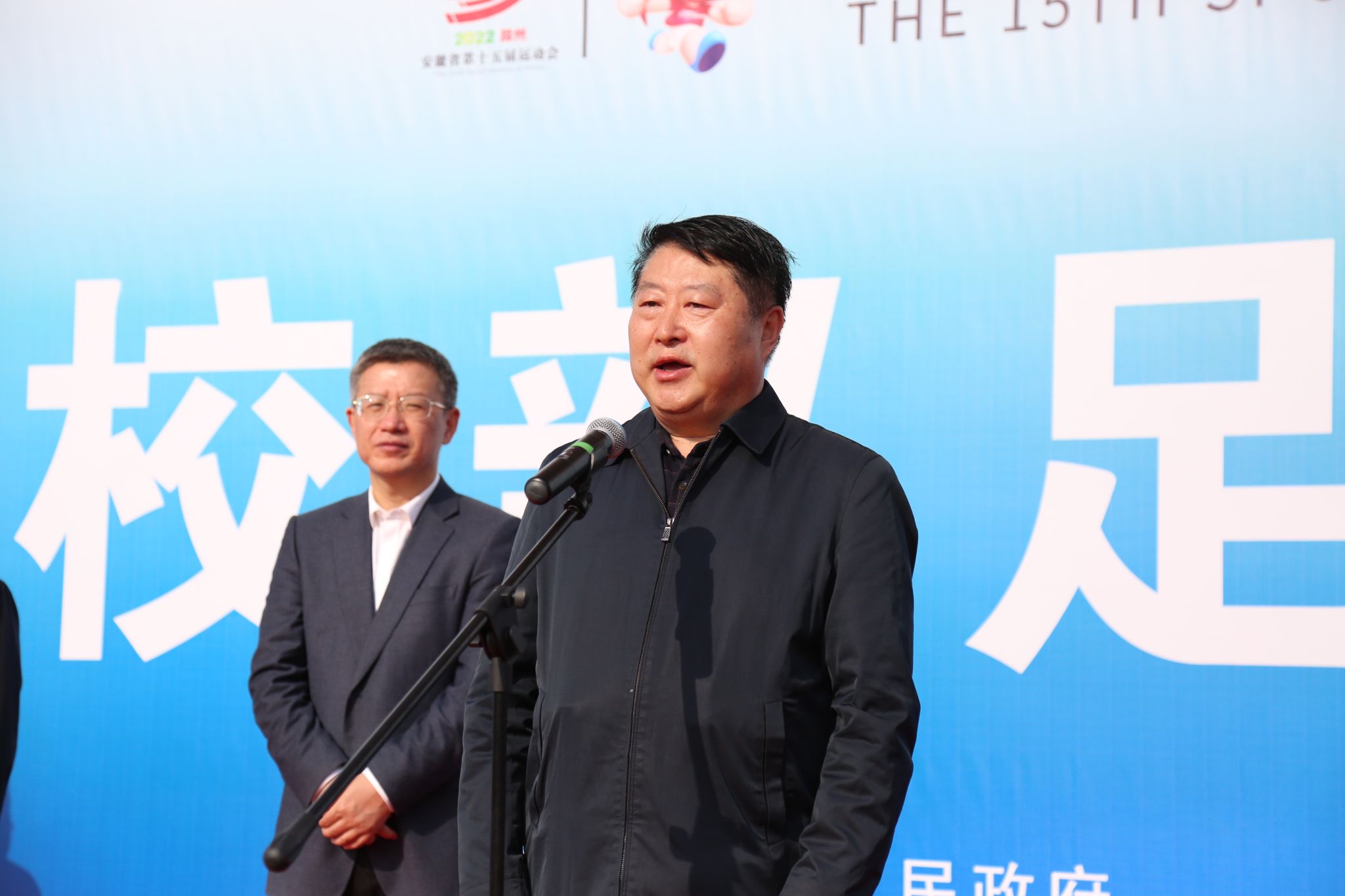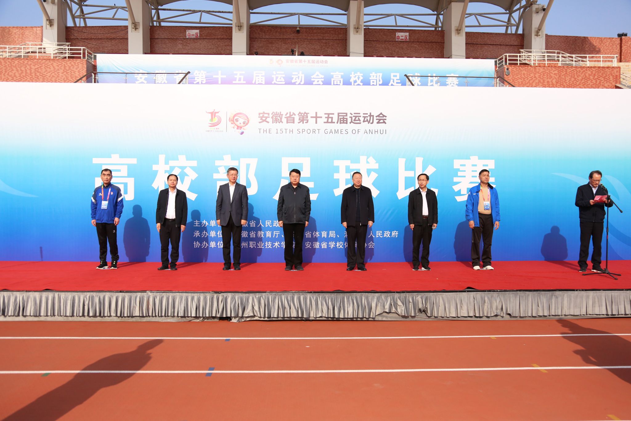 4月11日上午,安徽省第十五届运动会高校部足球比赛开赛仪式在金沙威尼斯官网体育场举行。安徽省委教育工委委员、省教育厅副厅长解平,滁州市人民政府副市长苏虹,金沙威尼斯官网党委书记曹付忠,滁州市委教体工委书记、教体局局长王玉和,省教育厅体卫艺处副处长葛德连,足球比赛仲裁陈有忠,裁判长陈文玉出席,各参赛队伍代表参加。开赛仪式由金沙威尼斯官网党委副书记、校长许雪峰主持。