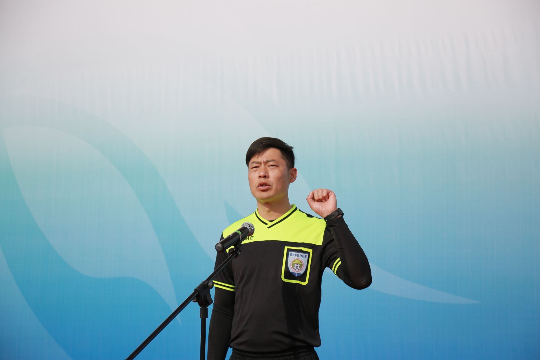 解平宣布第十五届省运会高校部足球比赛正式开赛。