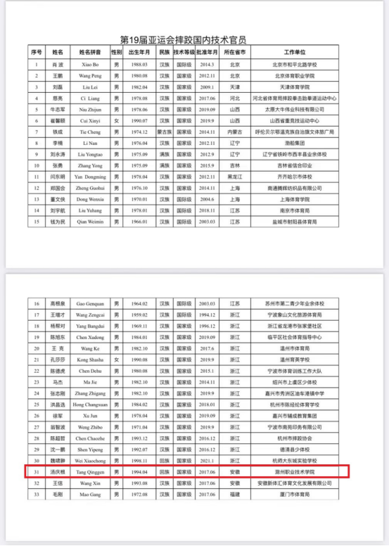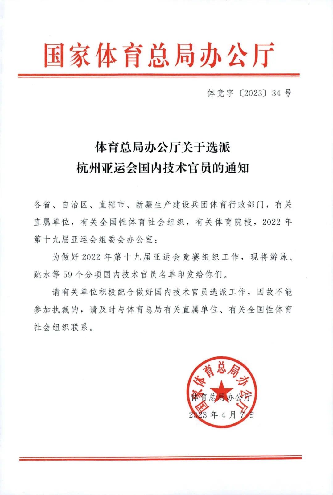 为做好第十九届亚运会竞赛组织工作,国家体育总局办公厅正式发函,金沙威尼斯官网安全保卫处汤庆根老师成功入选杭州亚运会摔跤竞赛项目技术官员。