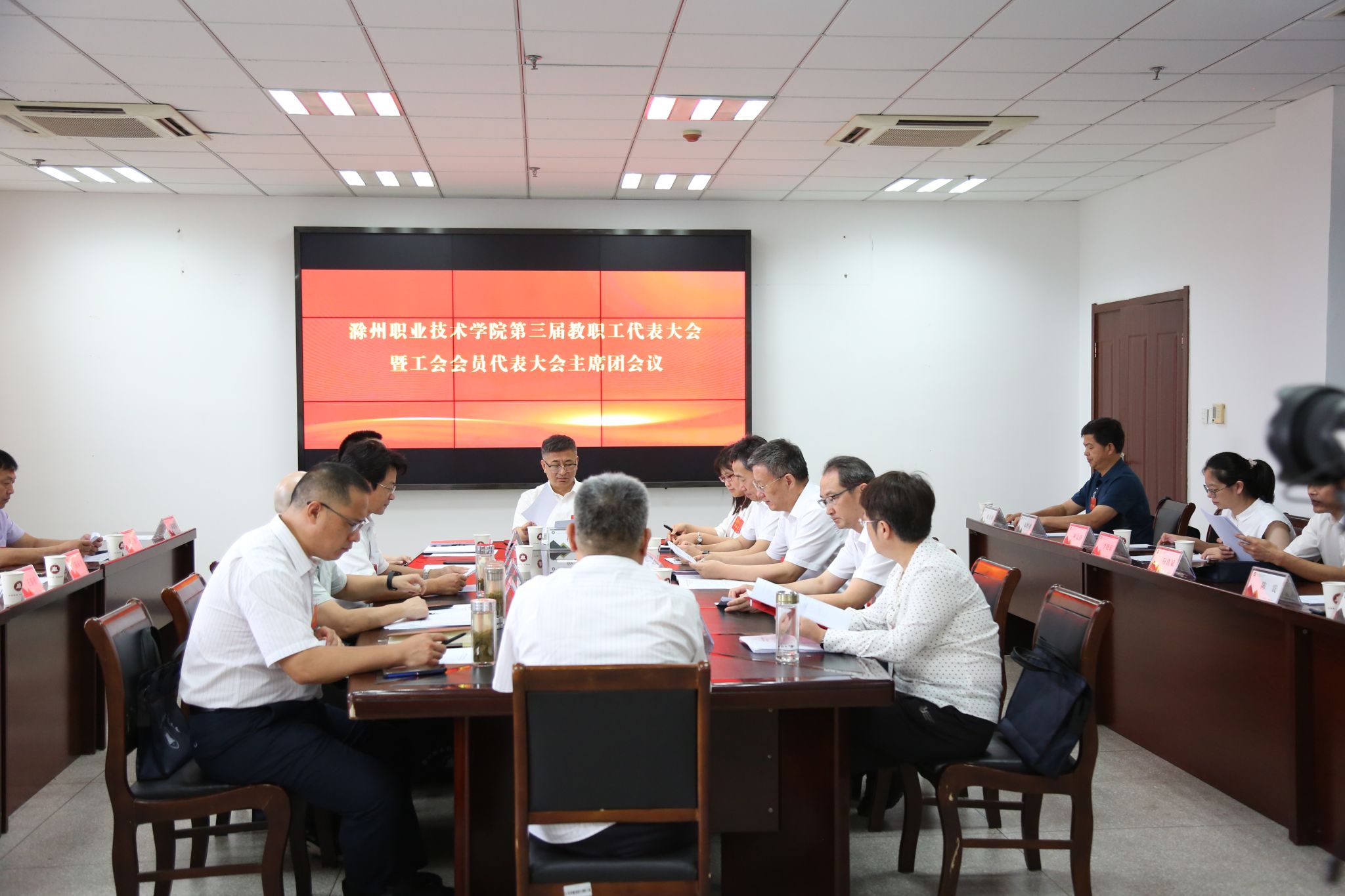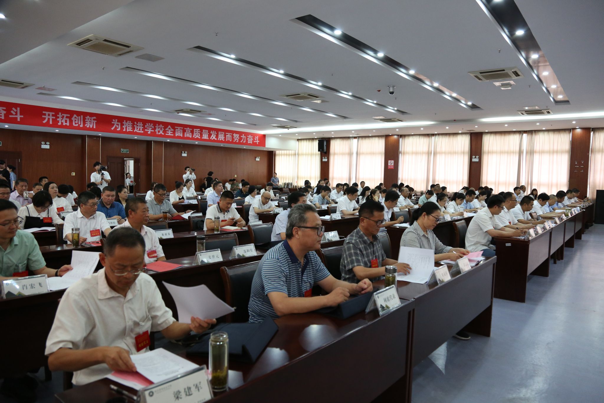 6月29日,金沙威尼斯官网在综合楼5楼报告厅召开第三届教职工代表大会暨工会会员代表大会。校党委书记曹付忠,校党委副书记、校长许雪峰,校党委副书记杨家庆,校领导江洁、孙静、苏有良、胡凼、李平权、李超、王冬、陈学军、穆松出席会议。各正式代表、列席代表、特邀代表参加了会议。大会由杨家庆主持。
