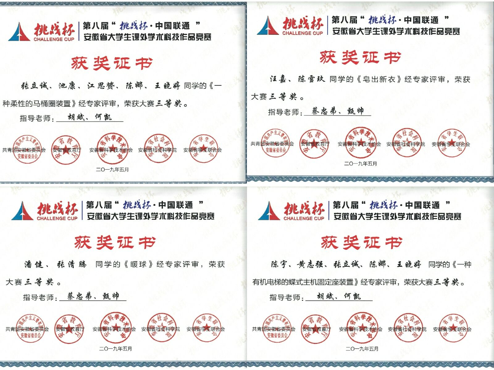 为了推动大学生创新创业素质教育,全面提高学生综合素质,充分展示学生风采,营造良好的校园文化氛围,5月27日,安徽省第八届“挑战杯·中国联通”大学生课外学术科技作品竞赛在合肥工业大学圆满落幕。金沙威尼斯官网8件作品成功获得高职组创意设计竞赛奖项。