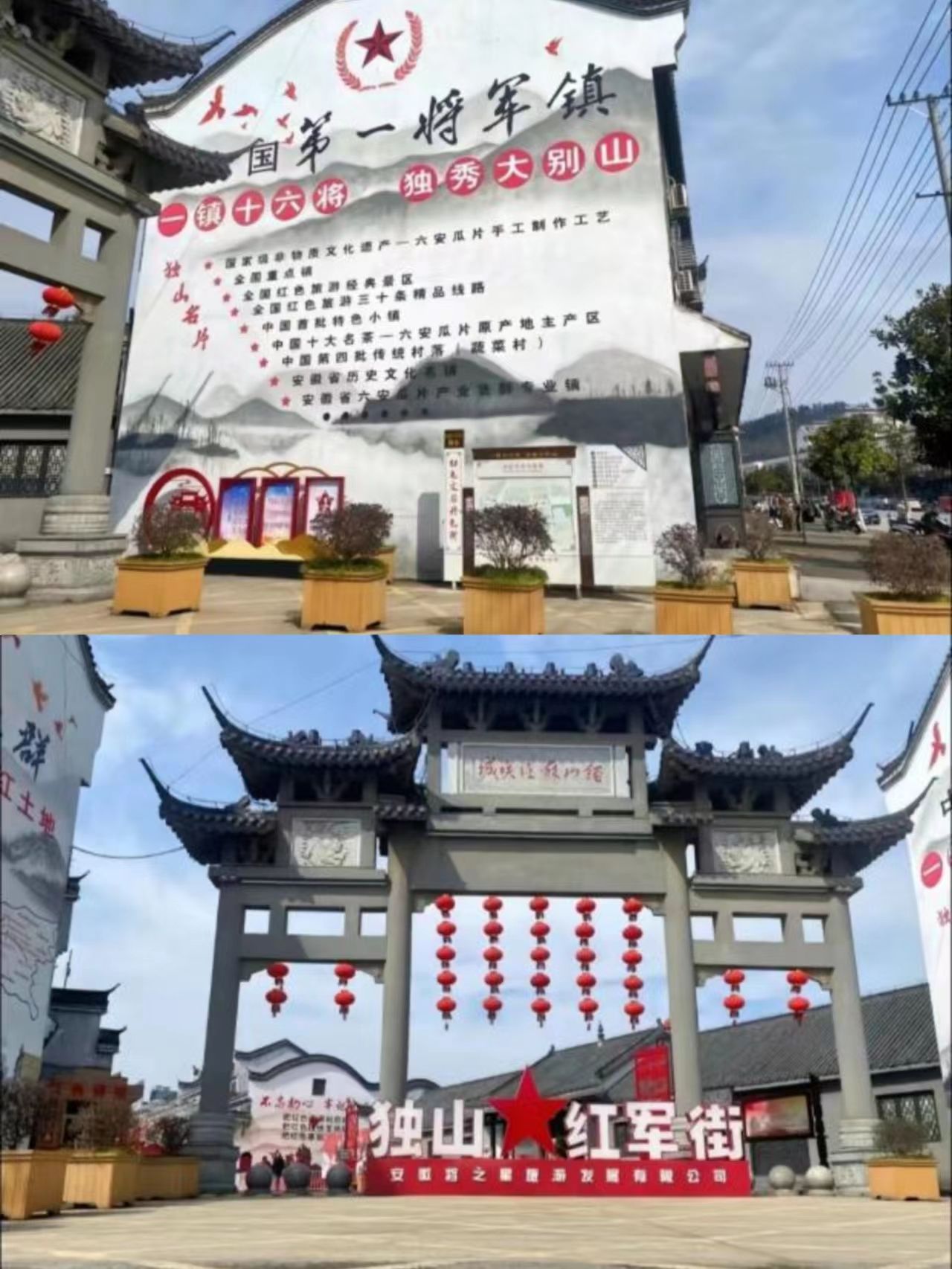 独山镇有着“一镇十六将,独秀大别山”的美称,被誉为“中国第一将军镇”,在这块红色的土地上,曾为中华民族的解放事业建立了不朽的功勋,是我国革命的策源地。独山镇自新民主主义革命以来,5万多英雄儿女投身到水深火热的中国革命洪流中去,诞生了16位开国将军,新中国成立后被追认为烈士的有530余人,可以说是户户有红军,村村有烈士,山山埋忠骨,邻里皆丰碑。