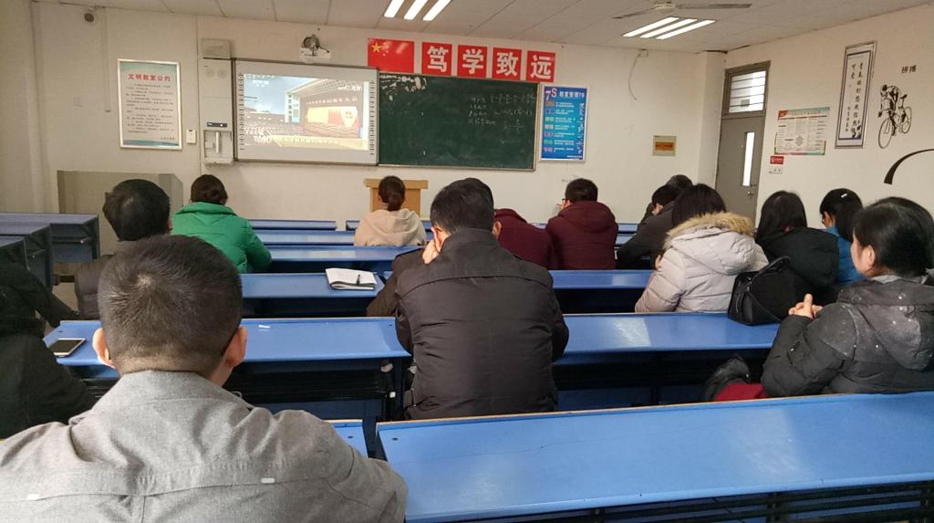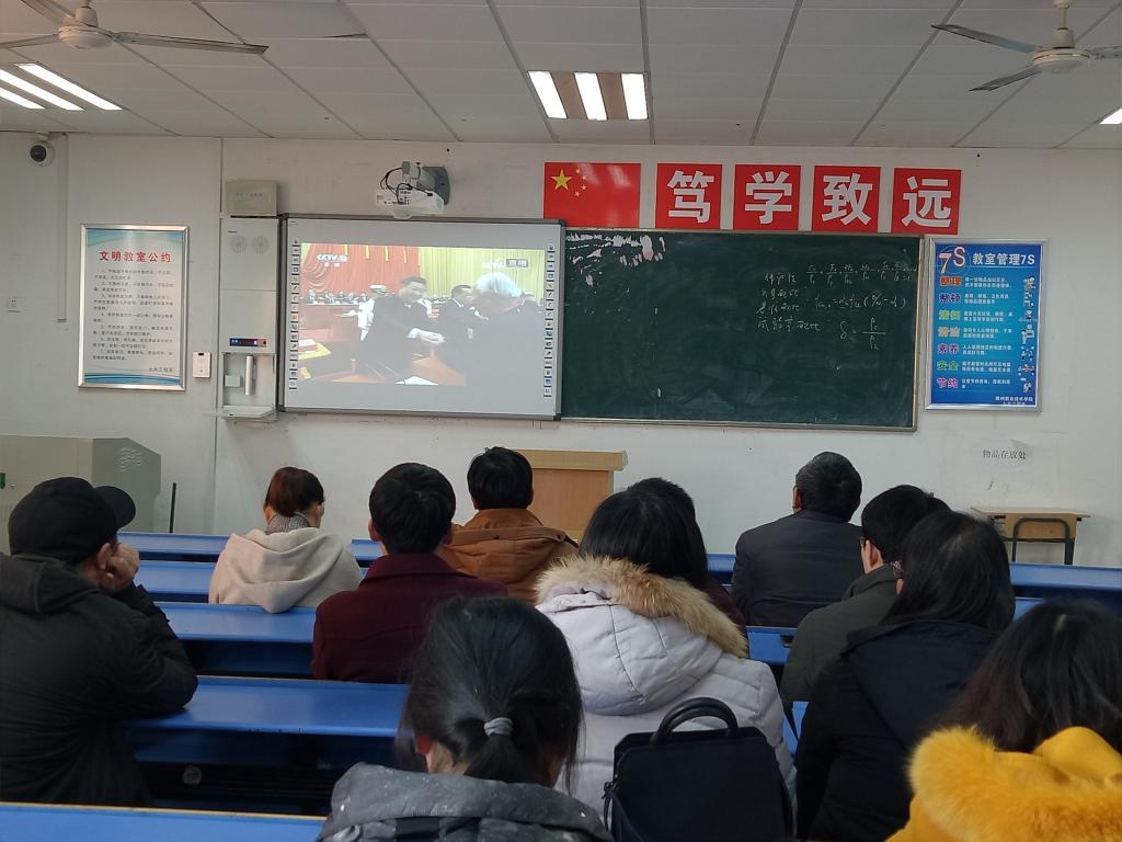 12月18日上午10:00,土木工程系组织教职工在4201教室集体观看庆祝改革开放40周年大会现场直播。
