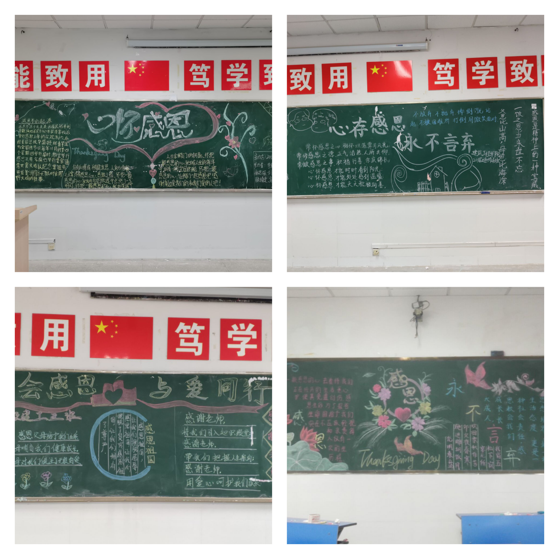 本次活动由各班班长主持,通过同学们的讲述、发问、分组讨论等形式,活动进行得如火如荼,调动了班上的每一位同学的参与。使同学们之间搭建了沟通的桥梁。各个班级组织同学们以感恩为主题画了黑板报。