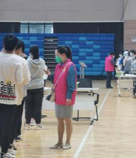 当日现场,在校体育馆内,建筑技术系的党员志愿者们一边提醒参与核酸检测的学生们提前准备好检测码,一边实时维持现场秩序,并耐心的协助医护人员做好核酸检测信息采集工作。通过党员们有序的组织和引导,当日的核酸检测工作有序、有效地进行,充分彰显了党员同志们全心全意为人民服务的奉献精神,为疫情防控贡献了力量。