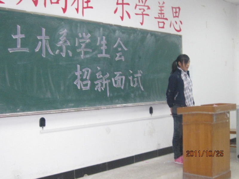 随着11级新生的学习和生活渐渐走向正轨,土木系学生会的招新工作也圆满完成了,经过周密的策划和统一的部署,于2011年10月初开始进行招新宣传,在四号楼大厅面向全系学生进行现场报名。
