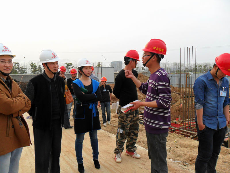 根据土木工程系毕业生跟踪调查方案,2013年4月1日下午,由土木工程系刘书记和陈书记带队,建筑工程专业和工程监理专业顶岗实习指导教师代表尤超老师和陈燕老师,及辅导员代表何文婧老师,来到江苏龙海建工集团滁州义乌商贸城工地对学生的顶岗实习进行跟踪管理与调研。