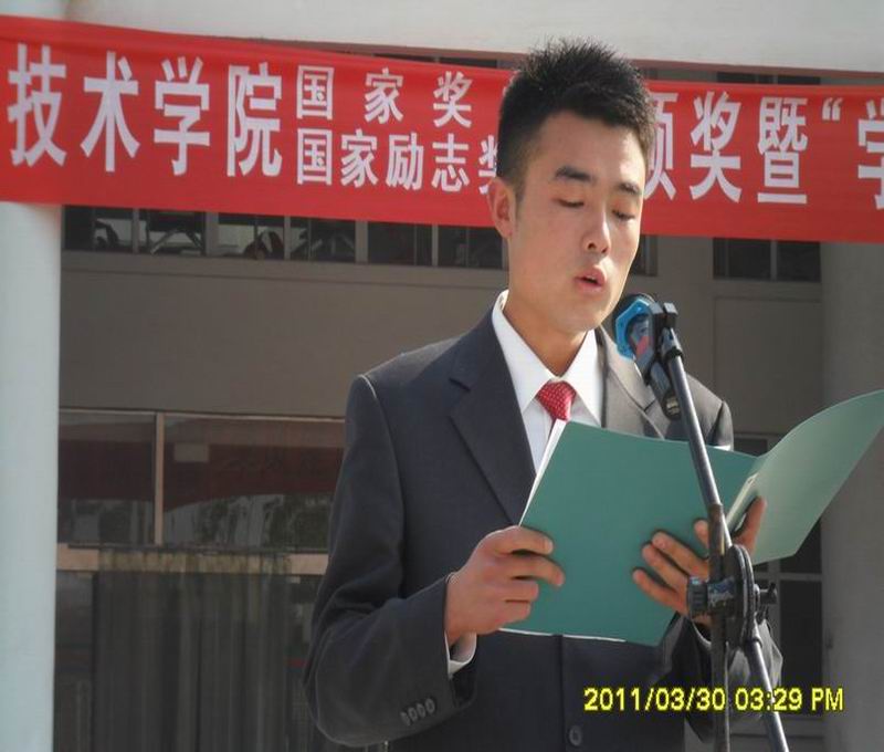 10级造价一班学生王虎代表全院学生发言