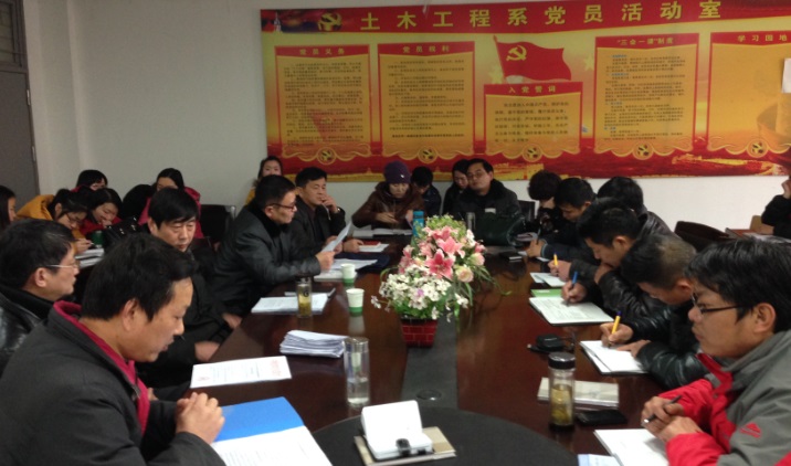 2014年2月26日下午,土木工程系召开党的群众路线教育实践活动学习推进会,院长助理刘宏和院督导组成员纪委副书记谢友庆以及保卫处副处长贺建邺到会进行具体指导,我系所有教职工党员、副高以上职称和副科级干部参加了会议。