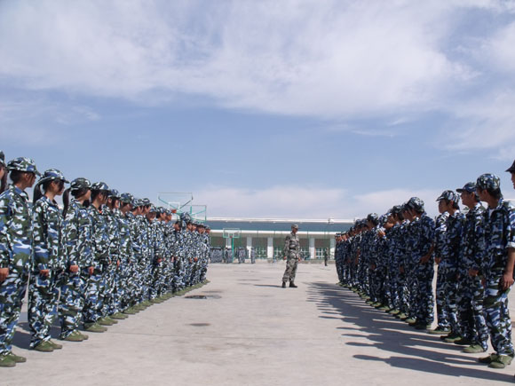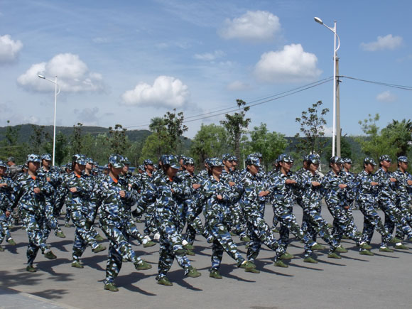 在教官的指导下,在老师的配合下,半个月的军训生活使同学们接收了严格的训练,换上迷彩服的他们站在操场上练习稍息、立正、齐步走、正步走、站军姿、练队列,这些对于同学们来说虽是枯燥的,不一会儿已经是汗流浃背了,但同学们个个神情专注,用心训练,锻炼了意志,增强了体质。