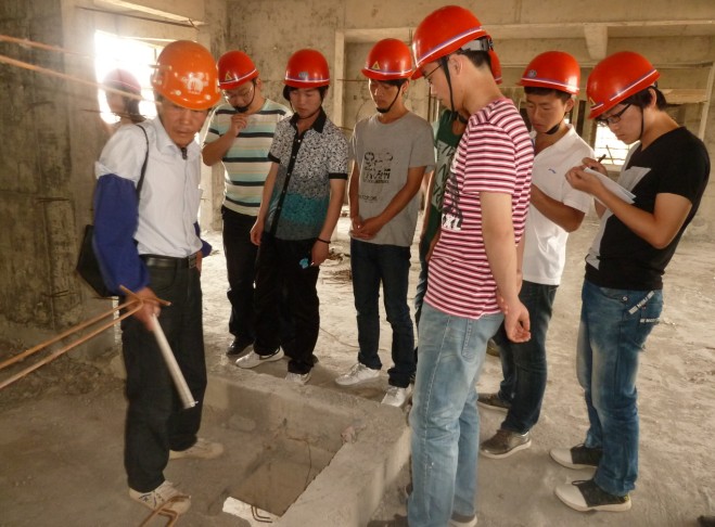 实践是大学生活的第二课堂,一年一度的校外实习在5月拉开了序幕。10级工程监理专业的学生于5月14日开始了为期一周的校外实习,所有学生都深入一线施工现场进行参观学习,学生步入工地,头顶烈日,不怕吃苦,受到了现场管理人员的好评。通过在实习工地里细心观察以及技术人员的指导下亲自动手操作,理论结合实际,使学生近距离的观察到房屋的建造过程,学到了很多很实用的具体的施工知识,这些知识往往是学生在学校很少接触,很少注意的,但又是十分重要、十分基础的知识。在老师和现场技术人员的指导下,学生对在实习过程出现的专业知识困惑和问题,得到了解决。通过实习,学生们不仅学到了许多专业知识,而且学到了很多为人处世的道理。