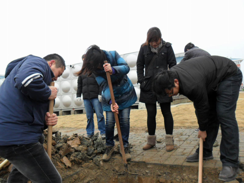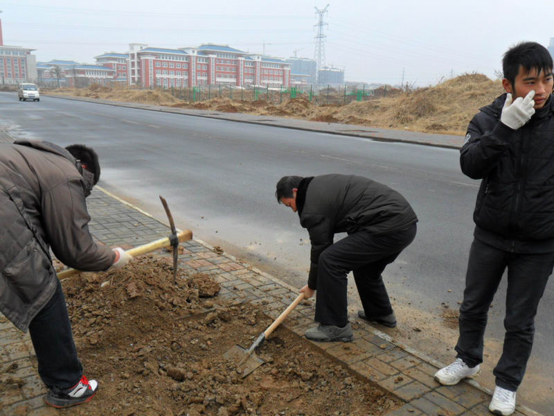 土木系教师不畏寒冷,开挖树洞,美化校园