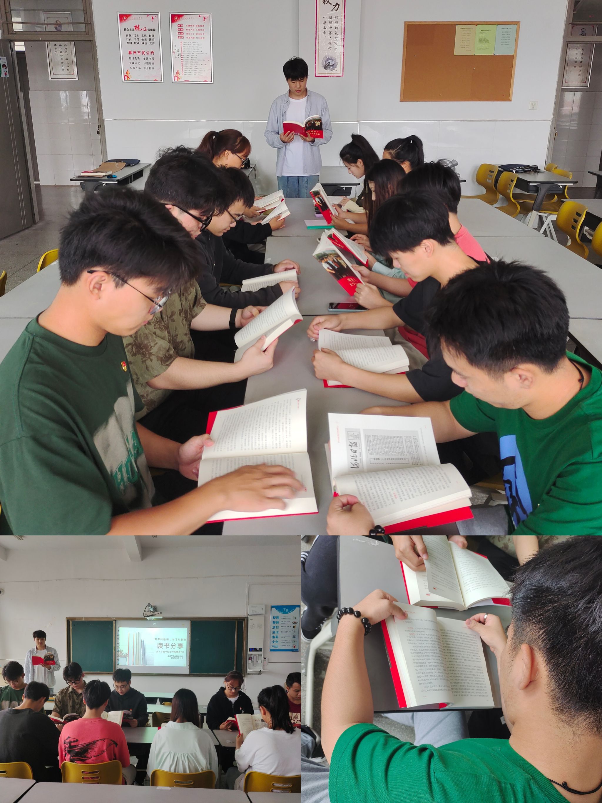 一本好书,不仅仅是思想转折的导师,更是照耀人生之路的灯塔。《习近平的七年知青岁月》为当代青年人树立了正确的世界观、人生观和价值观,更是一本党员提升思想政治觉悟的励志教材。在分享会上,学生党员认真研读了《习近平的七年知青岁月》,并挑选自己感触最深的章节,开展诵读活动,并结合自身学习生活简要谈自己的感想体会。