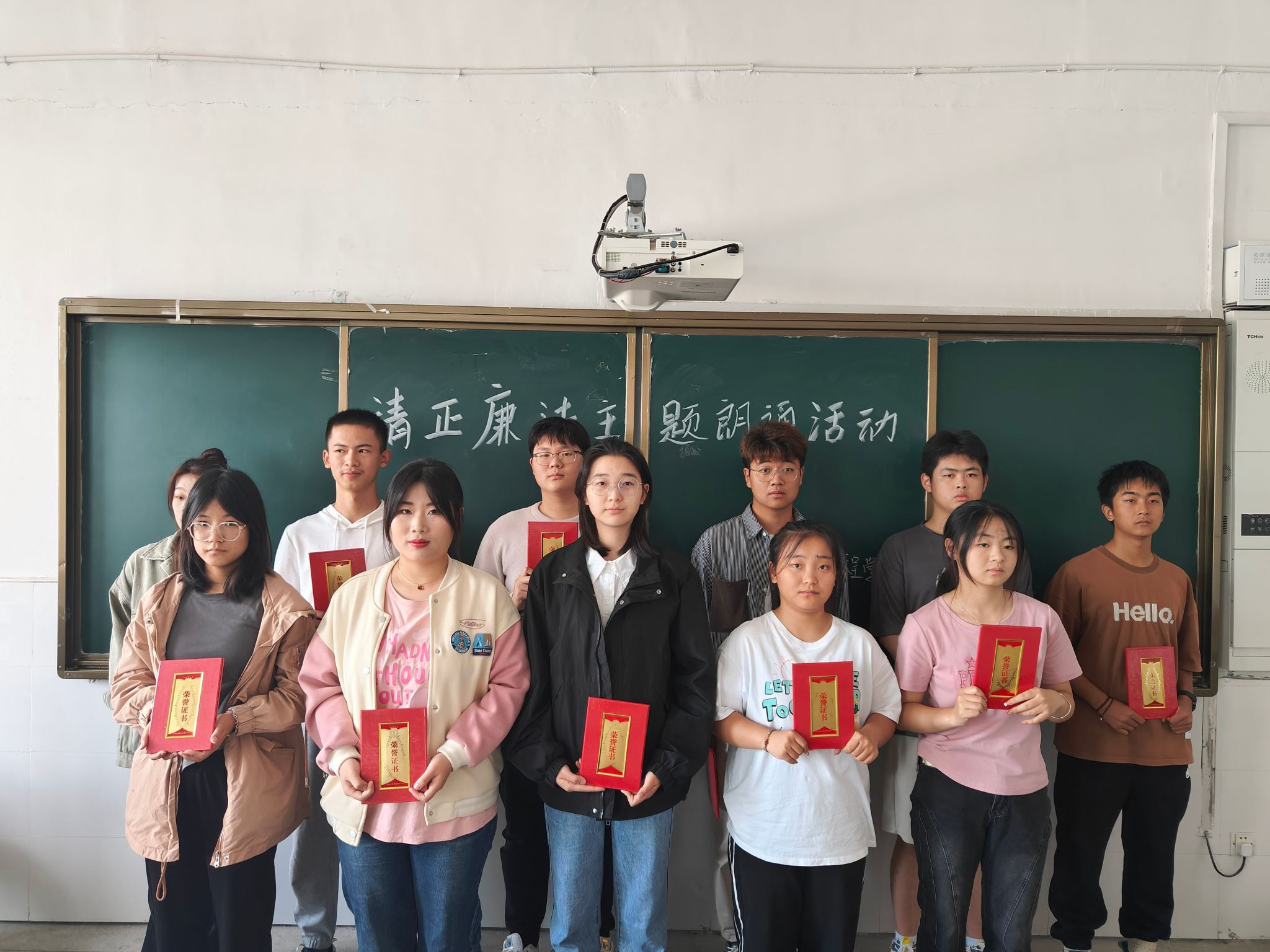 活动现场,选手们精神饱满、慷慨激昂,以富有激情和表现力的声音,朗诵了一系列传统和现代的清正廉洁经典诗歌、散文和演讲,他们紧扣“清正廉洁”活动主题,用真挚的感情和生动的语言展现我院学子积极向上、廉洁自律的精神风貌,从多角度诠释了对廉洁文化的深刻感悟,让在场同学们接受了深刻的廉洁文化洗礼,赢得了阵阵热烈的掌声。