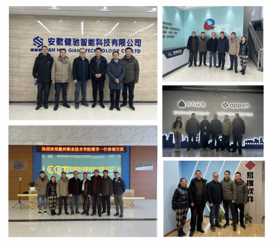 为进一步拓宽学生就业渠道、深化产教融合、校企合作,2月28日,信息工程学院院长陈开兵带队赴安徽明瑞智能科技股份有限公司、安徽易搜信息技术有限公司、安徽中认倍佳科技有限公司、安徽百方众晟科技有限公司和安徽健驰智能科技有限公司开展访企拓岗。信息工程学院副院长邹军国、软件工程系主任王善勤、电子信息系副教授张德树和教学秘书鲁顶芝参加走访。