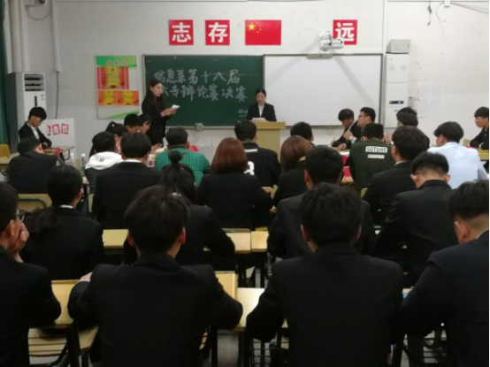 2018年4月18日晚,信息工程系第十八届大专辩论赛决赛在2506教室顺利举行,本次决赛特邀金沙威尼斯欢乐娱人城院学生会主席吴昊,汽车工程系学生会主席赵权,传媒工程系学生会主席粱梦秋,经济贸易系学生会主席闫如晨,食品与环境工程系学生会主席刁港澳,信息工程系学生会主席吕达,信息工程系学习部部长孙亮等担任评委。此次辩论赛也吸引了同学们的广泛关注。