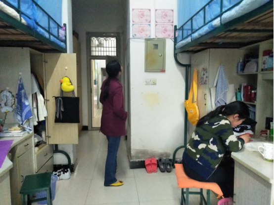 学干们在李红艳老师的带领下对宿舍卫生进行了检查,对有无使用违规电器等不合理现象逐一排查。干事们本着认真、尽职的态度按照要求检查了各个宿舍,并且没有发现使用违规电器的寝室,且大部分宿舍卫生良好,最终评选出了优秀寝室。